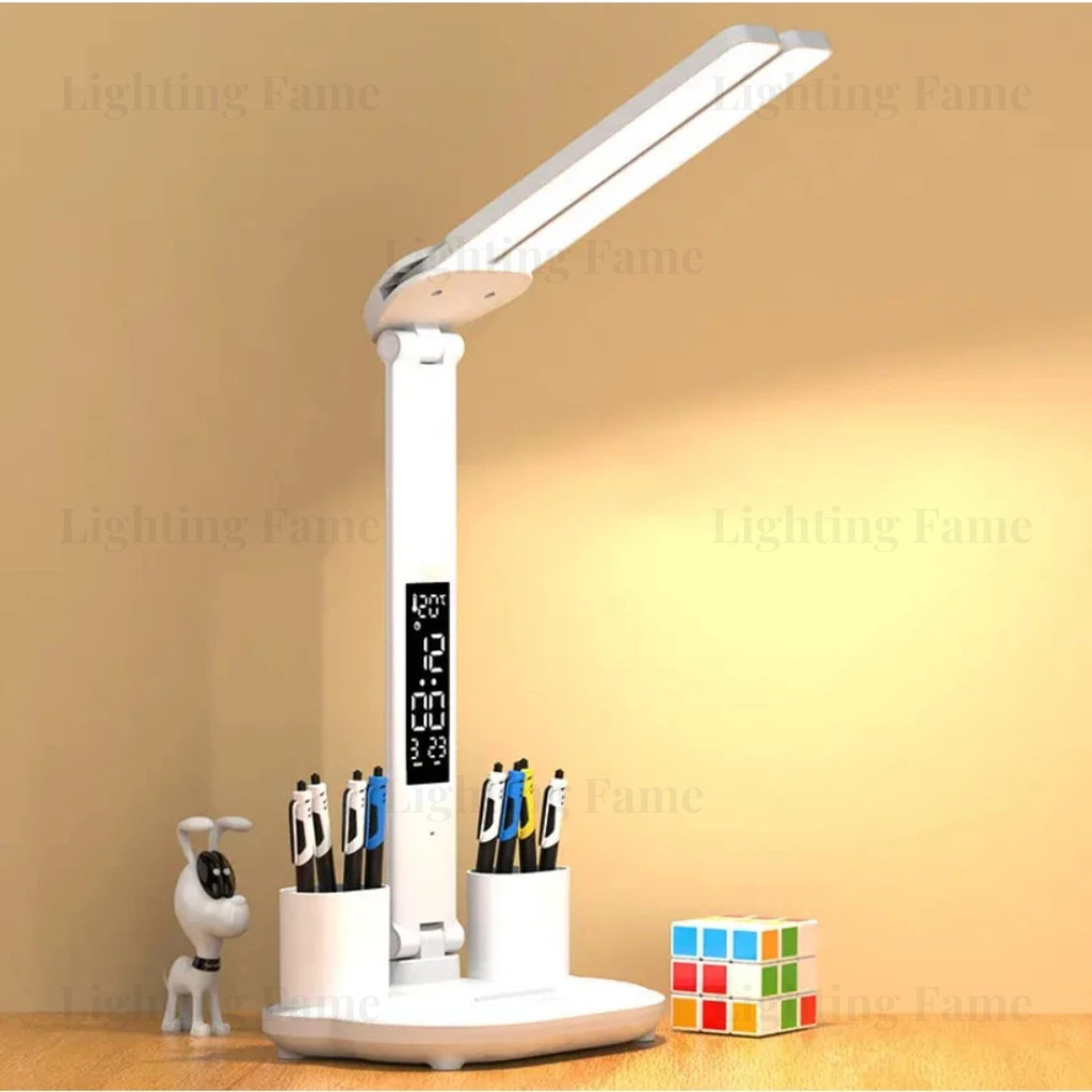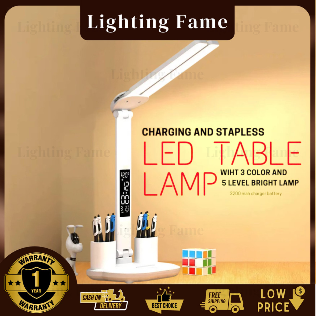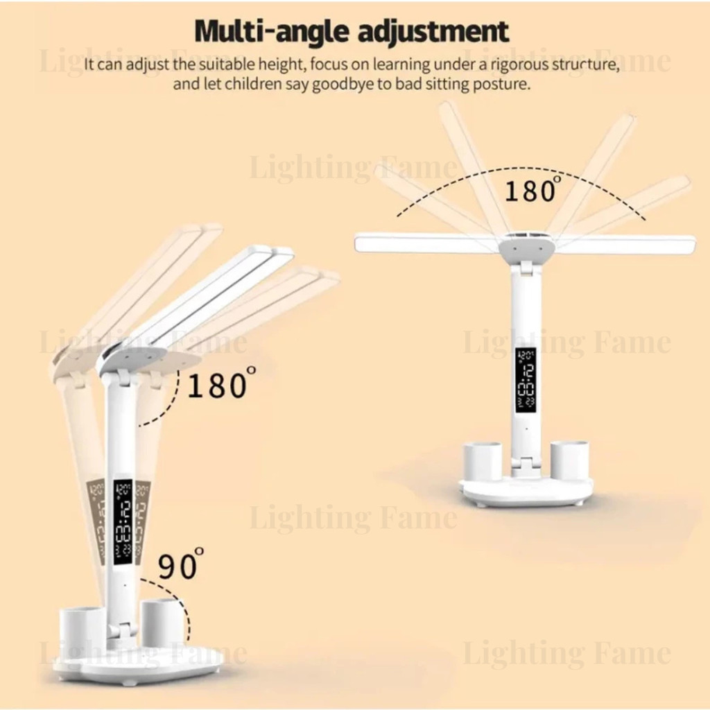 LIGHTING FAME **GARANSI 1 TAHUN** Foldable LED Desk Lamp Multifunction Table Lamp Night Light with Pen Holder for Bedroom Study Reading Lamp with Calendar Touch LF