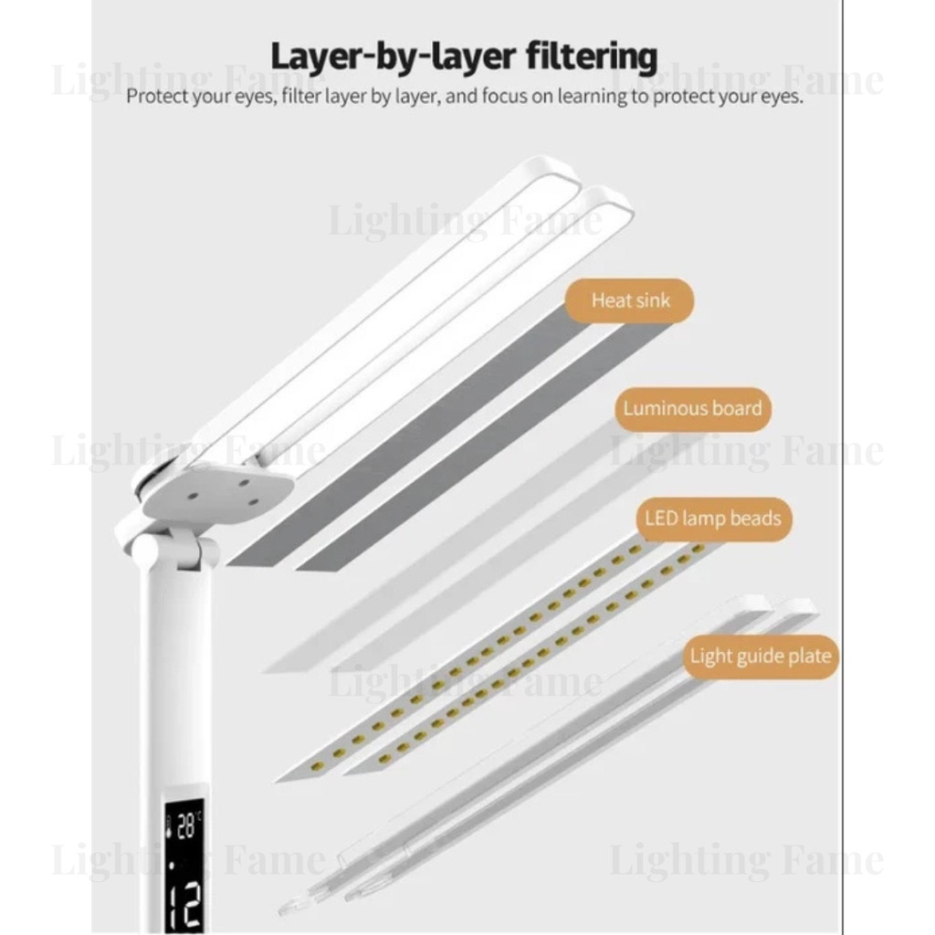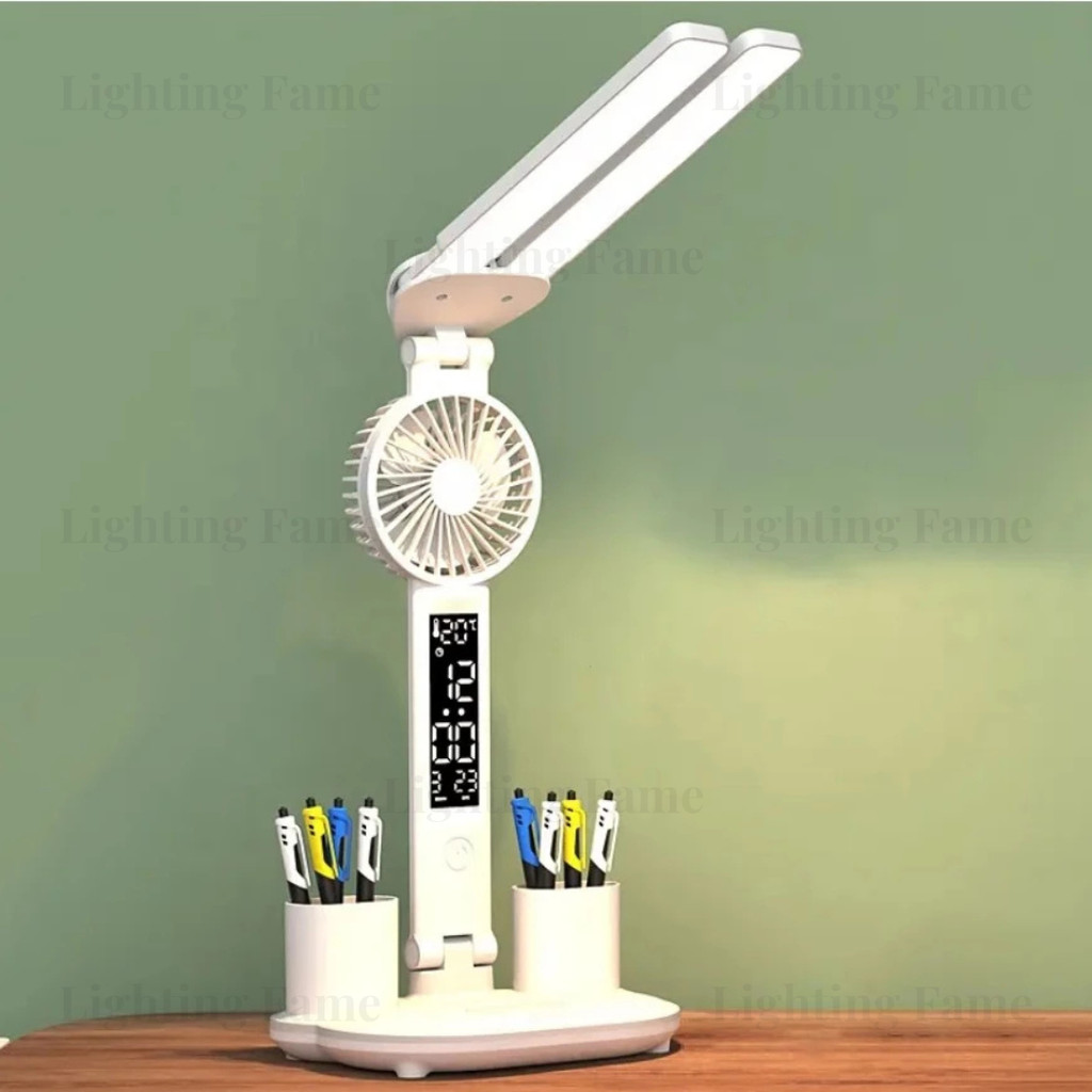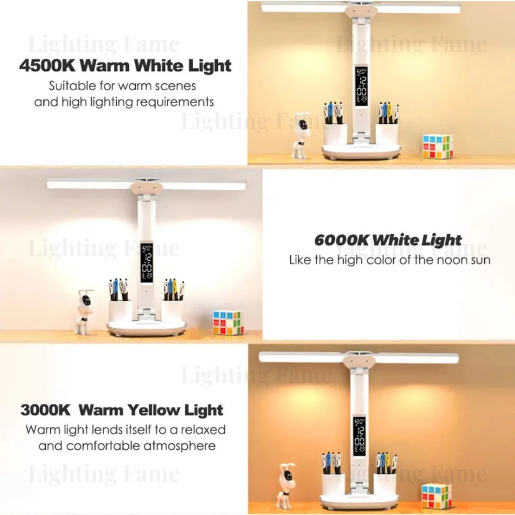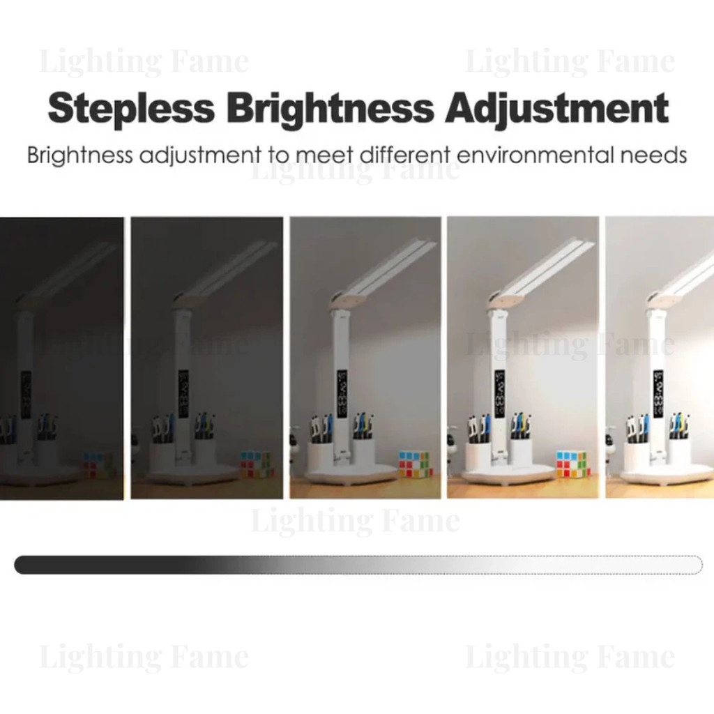 LIGHTING FAME **GARANSI 1 TAHUN** Foldable LED Desk Lamp Multifunction Table Lamp Night Light with Pen Holder for Bedroom Study Reading Lamp with Calendar Touch LF