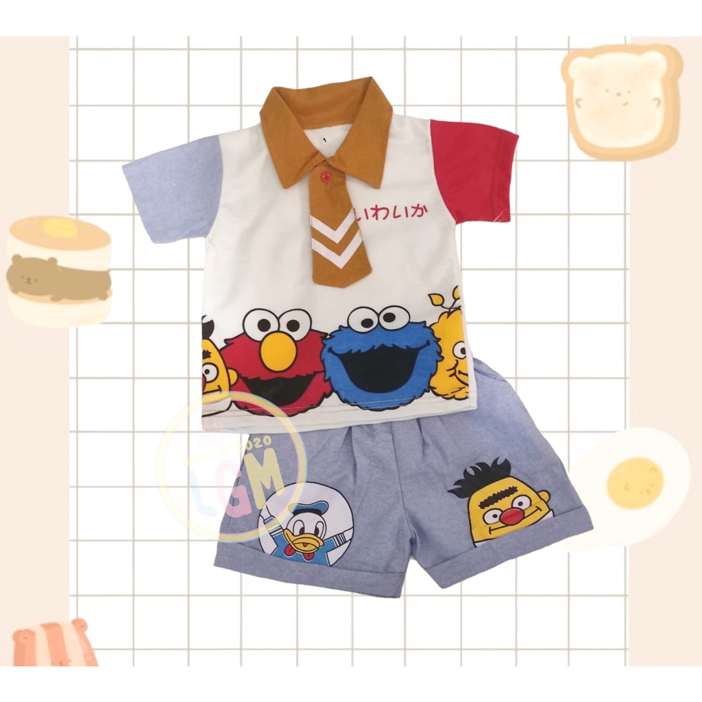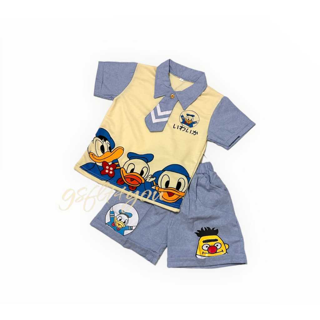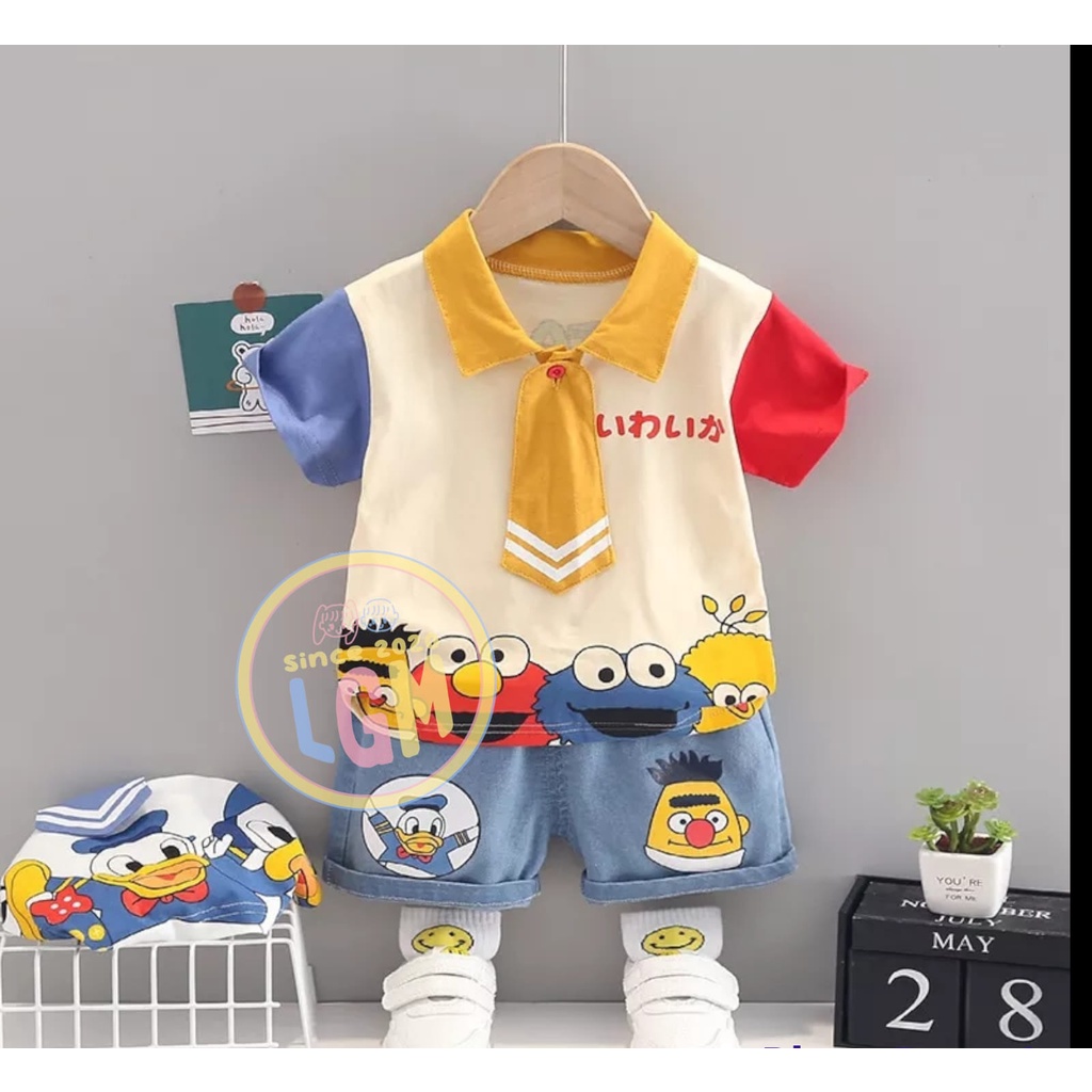 LIGIMIKIDS- Setelan anak laki laki denim / setelan anak polo shirt lengan pendek (1-6th)