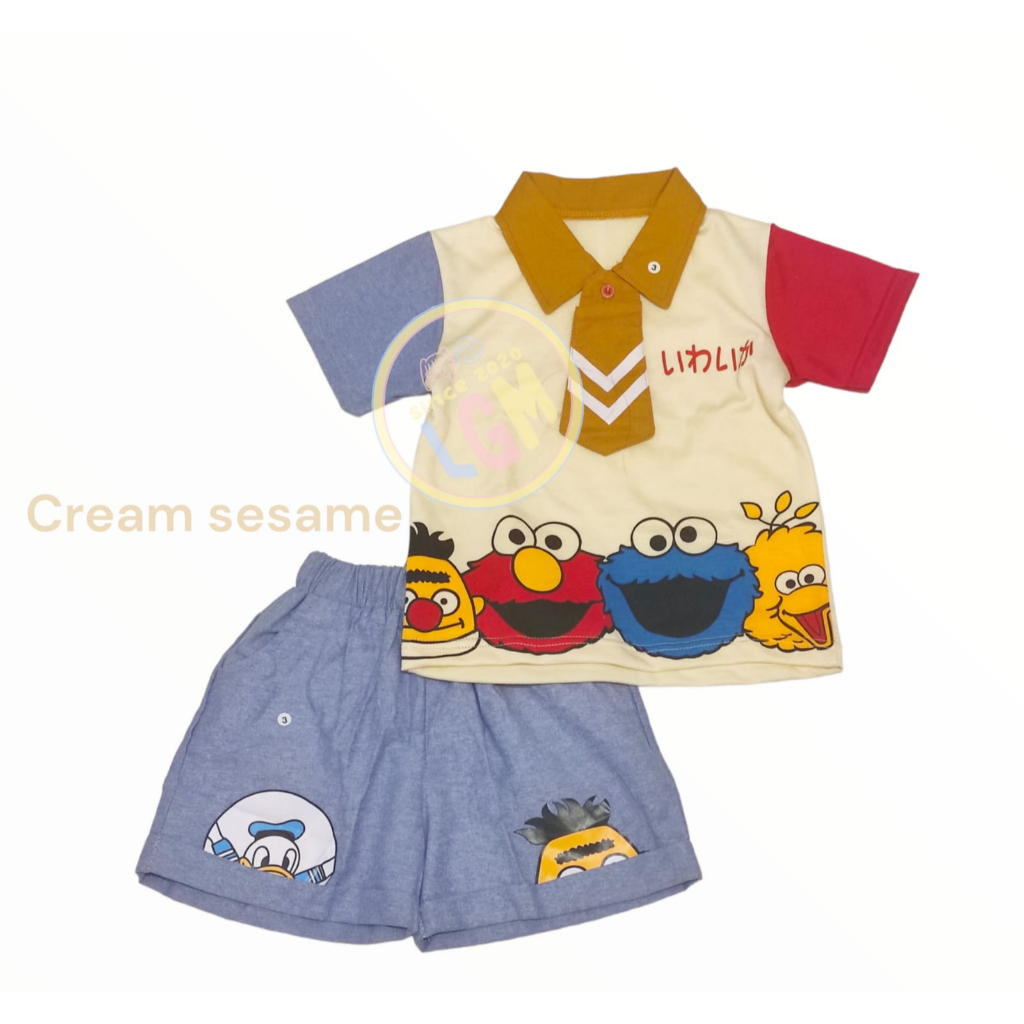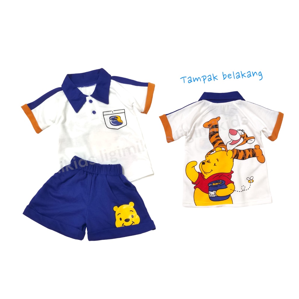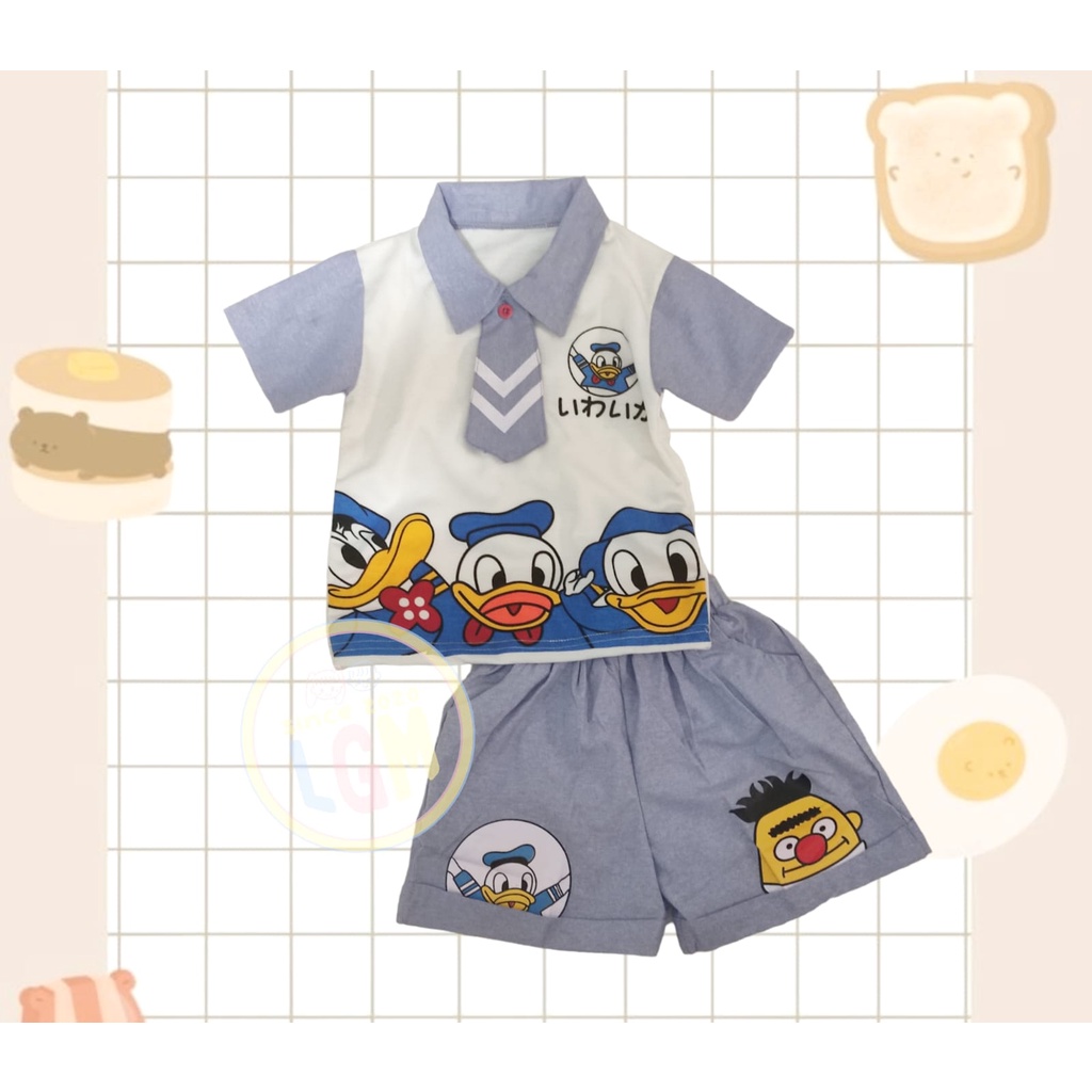 LIGIMIKIDS- Setelan anak laki laki denim / setelan anak polo shirt lengan pendek (1-6th)