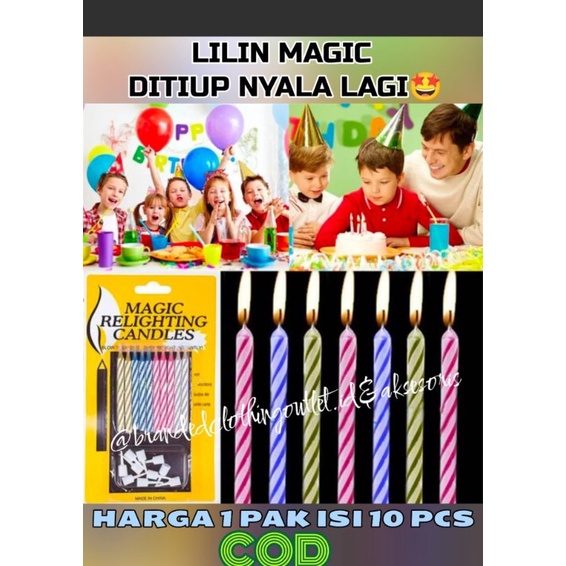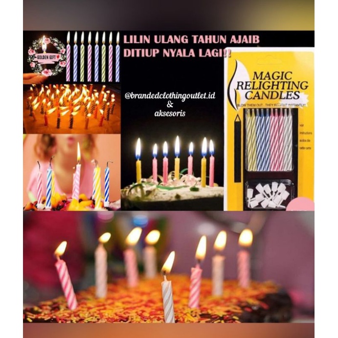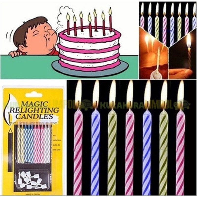 LILIN MAGIC RELIGHTING CANDLE / LILIN AJAIB / LILIN ULANG TAHUN MAGIC / LILIN WARNA WARNI / LILIN DITIUP NYALA LAGI - 1PACK ISI 10 PCS