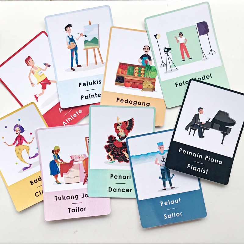 LILOMILO Flashcard profesi/flash card pekerjaan/job/profession ukuran besar dilaminasi
