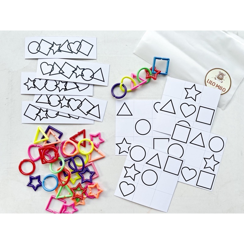 LILOMILO Meronce pola geometri/kids activity memasang rantai bentuk/rantai geometri lucu/rantai bentuk shape