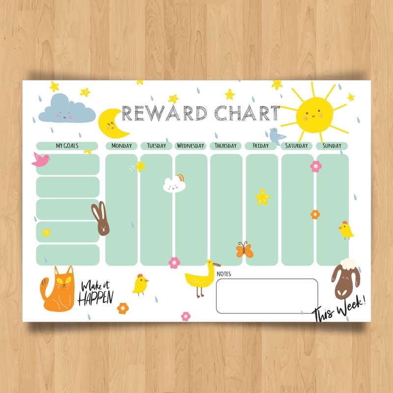 LILOMILO Reward Chart Table Wipe & Clean Premium/Tabel Reward Anak dengan sticker reward