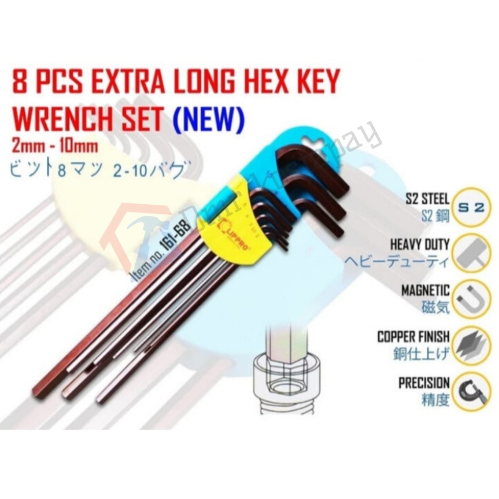LIPPRO 161-S8 Kunci L Set Panjang 8 Pcs Extra Long Hex Key
