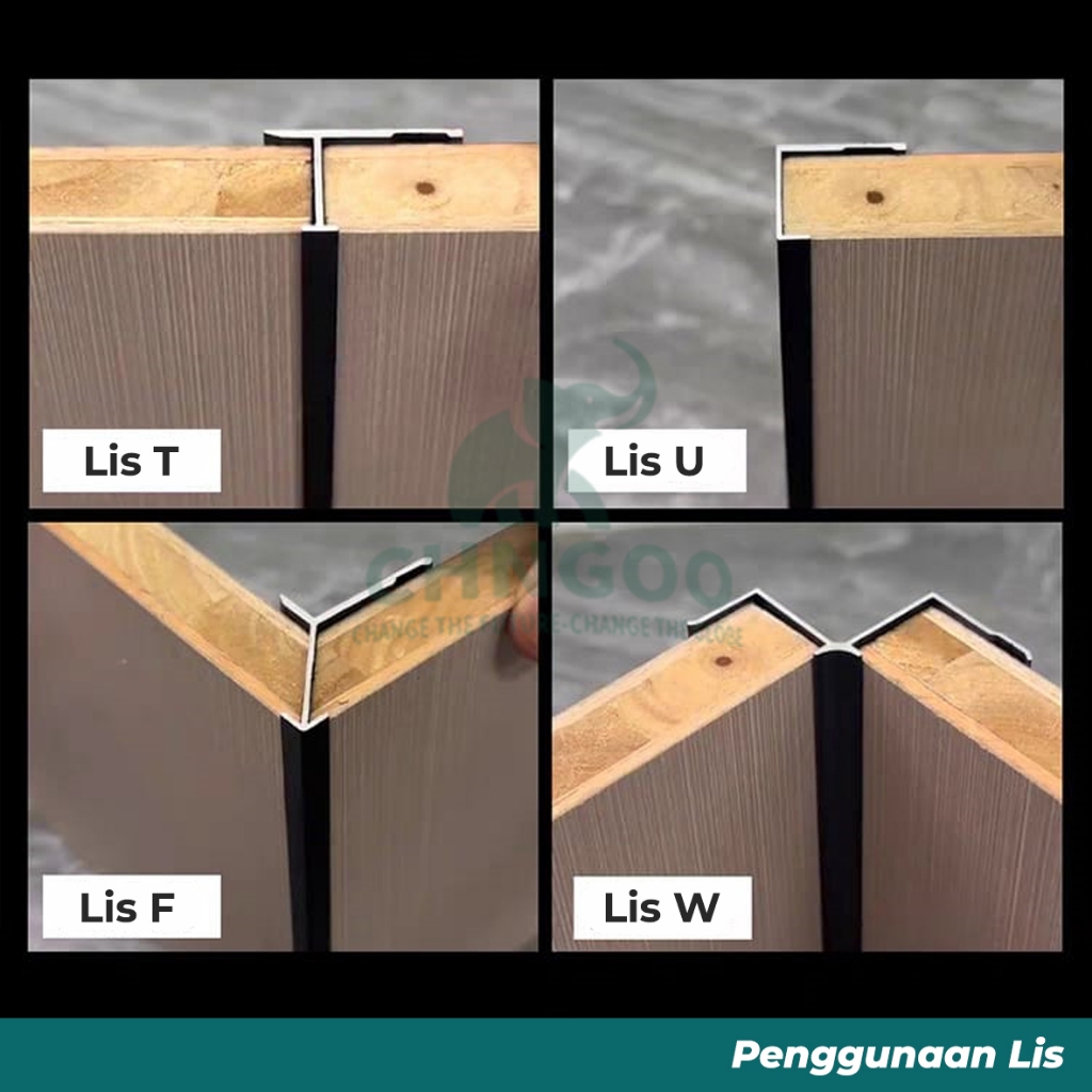 LIS PANEL ALUMINIUM, Untuk Wallboard, Sheetboard Aksesoris Rumah Modern Lis U, T, W, F) 5/8MM