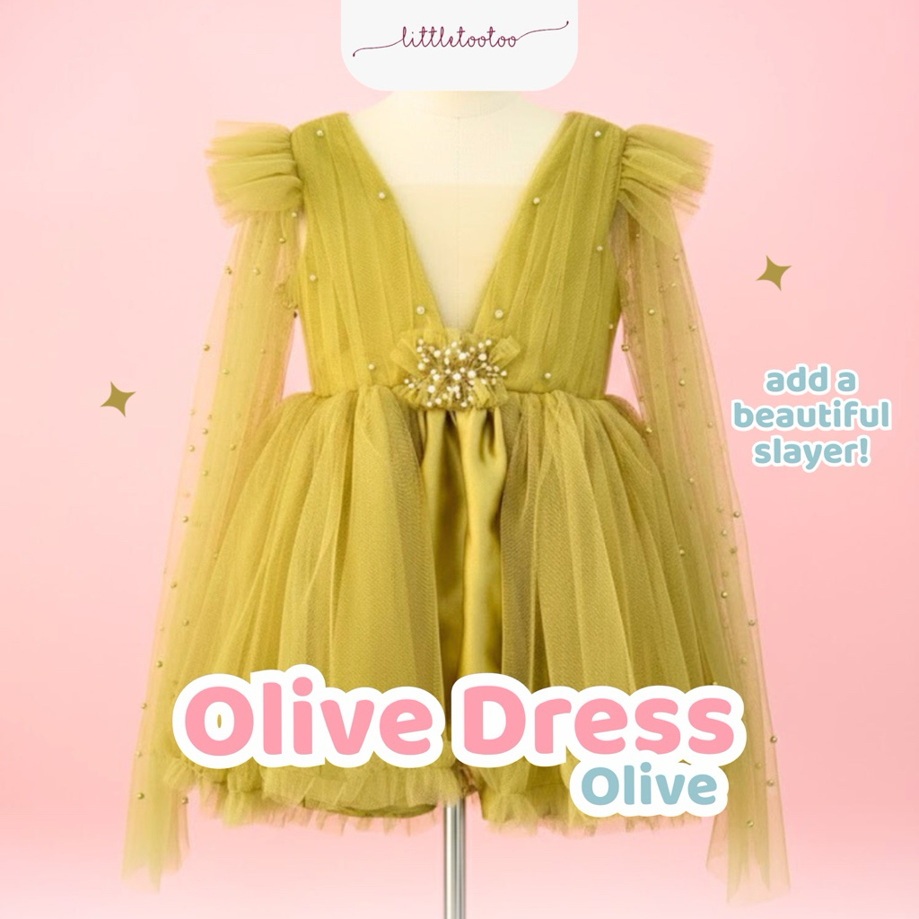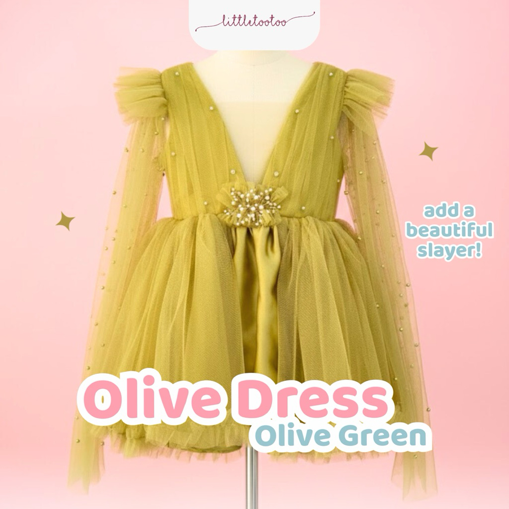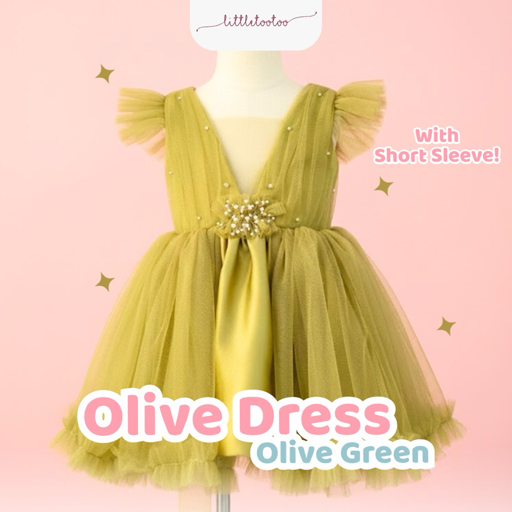 LITTLE TOOTOO KIDS - Olive kids dress olive gren short sleeve / dress anak slayer pearls / gaun anak perempuan