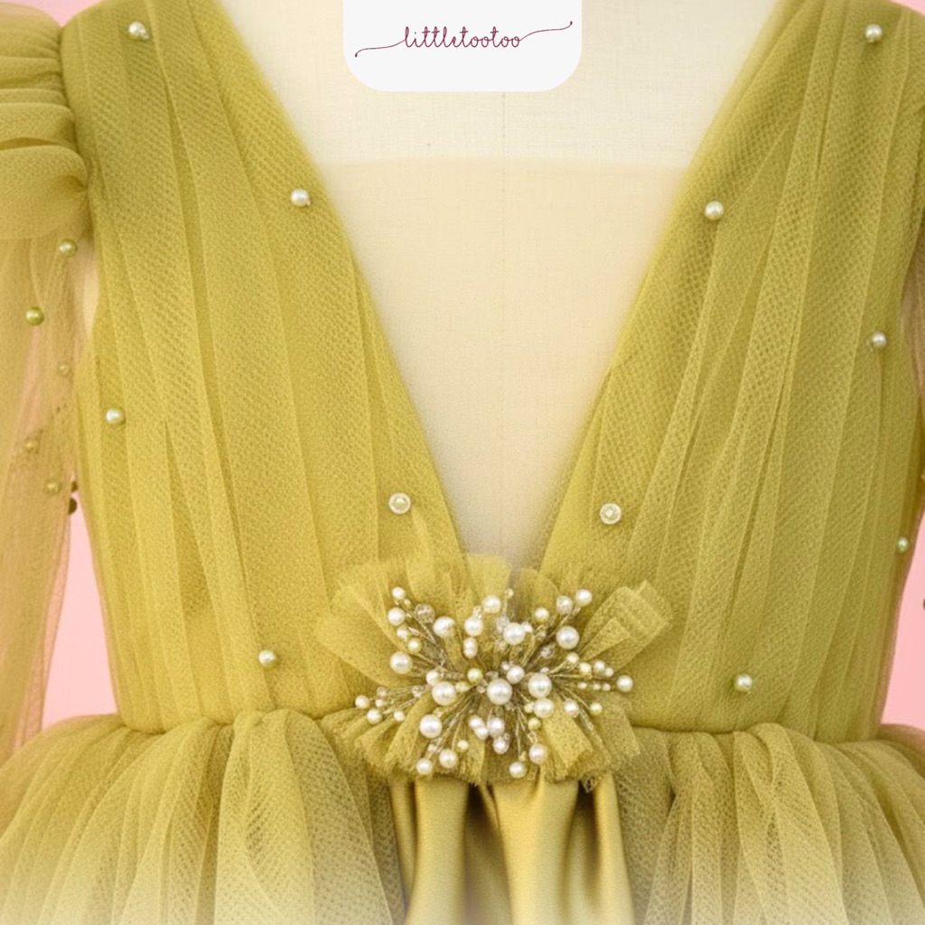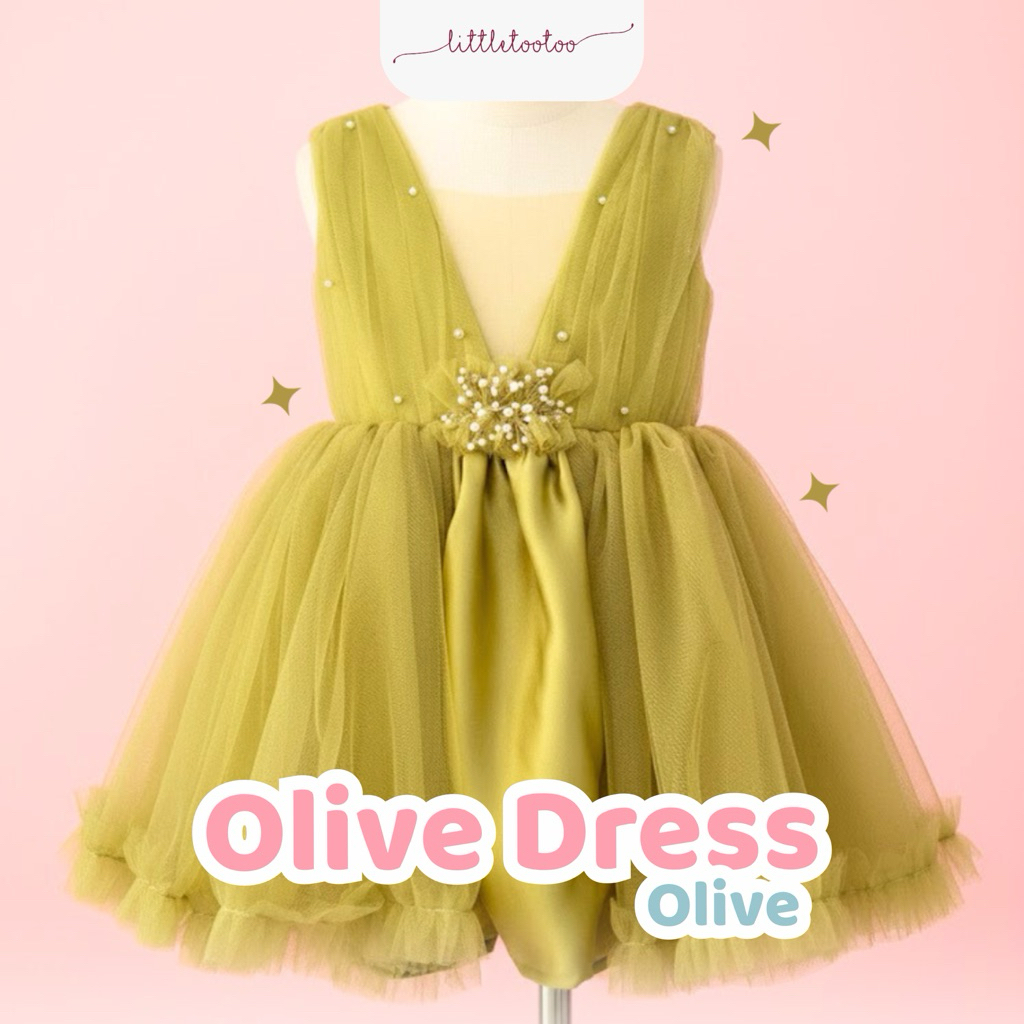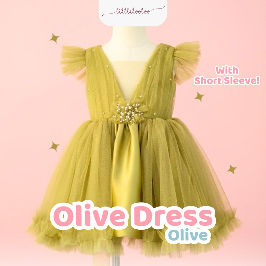 LITTLE TOOTOO KIDS - Olive kids dress olive gren short sleeve / dress anak slayer pearls / gaun anak perempuan