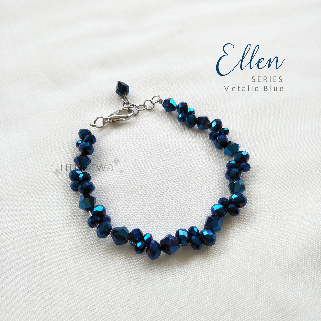 LITTLE TWO Gelang Kristal Ceko - Ellen Metalic Blue Gelang Wanita Stainless Steal Anti Karat