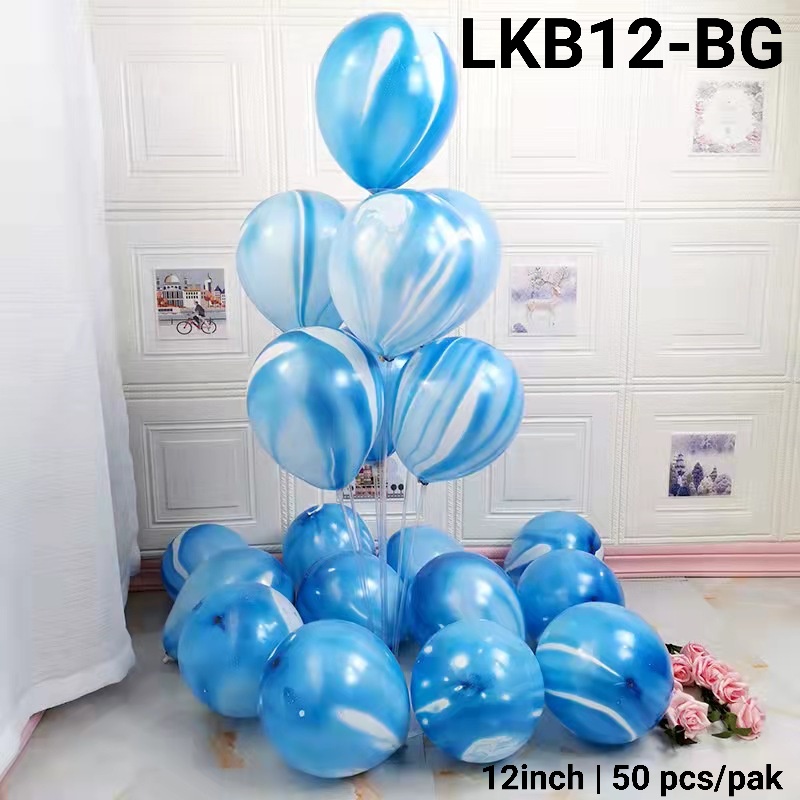 LKB12-BG Balon latex 12 inch 1 pak isi 50 marble marmer tebal biru (Balon Latex Bulat Marble) papaya balon