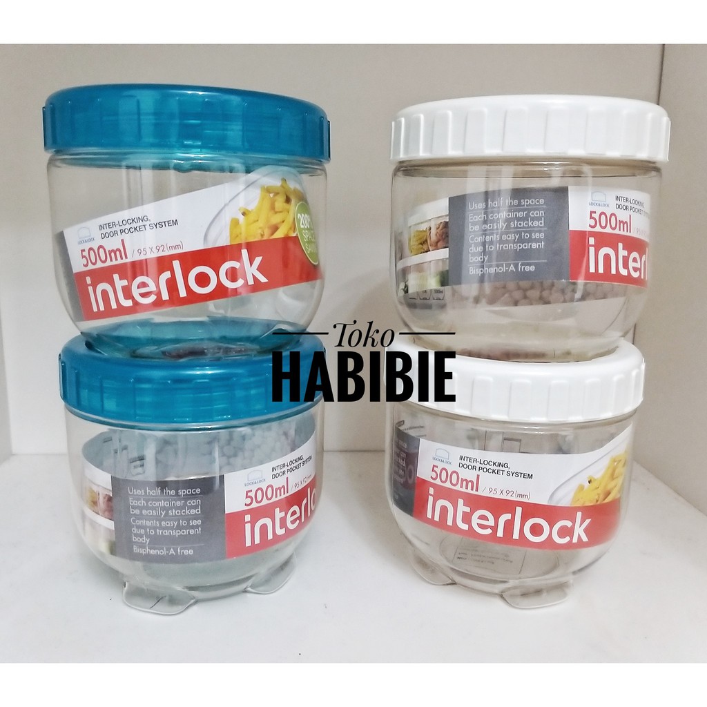 LOCK&LOCK Lock n Lock Interlock Tempat Makanan Toples Kue Kotak Bumbu Jar 500 mL
