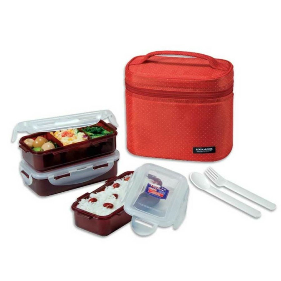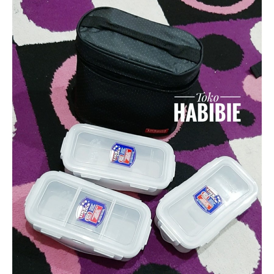 LOCK n LOCK Lock & Lock Lunch Box 3P Set with Fork Spoon and Bag tempat bekal kotak makan makanan