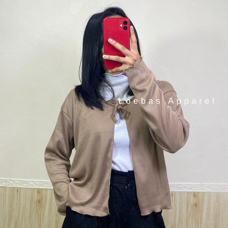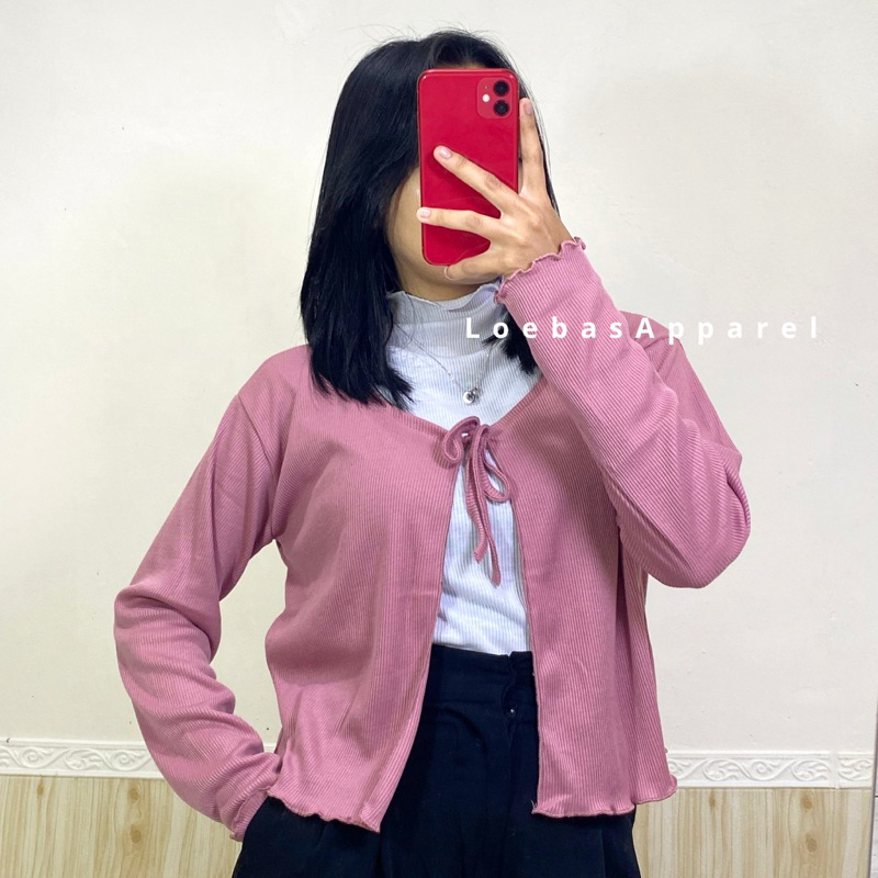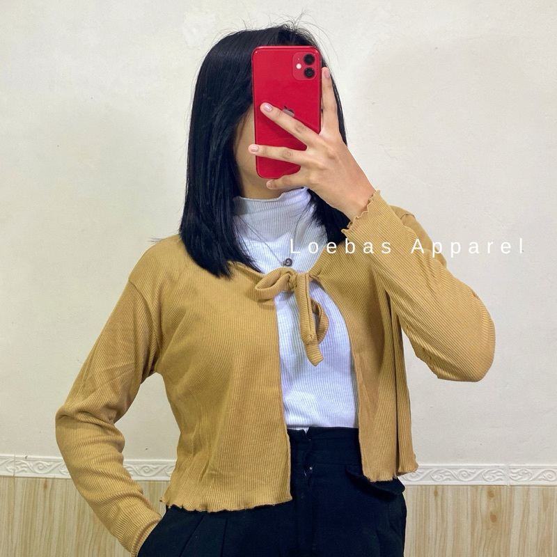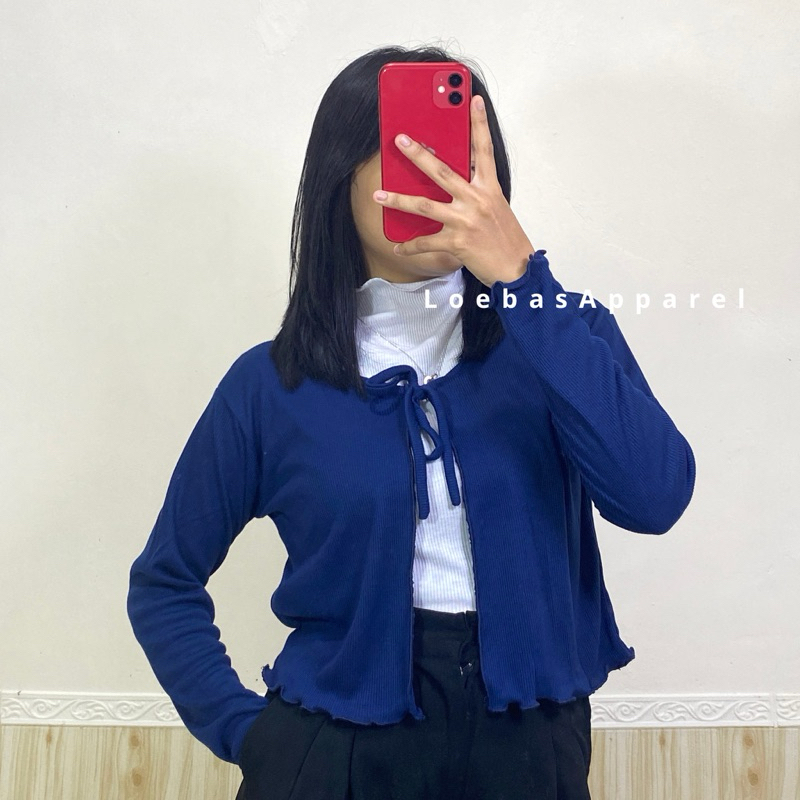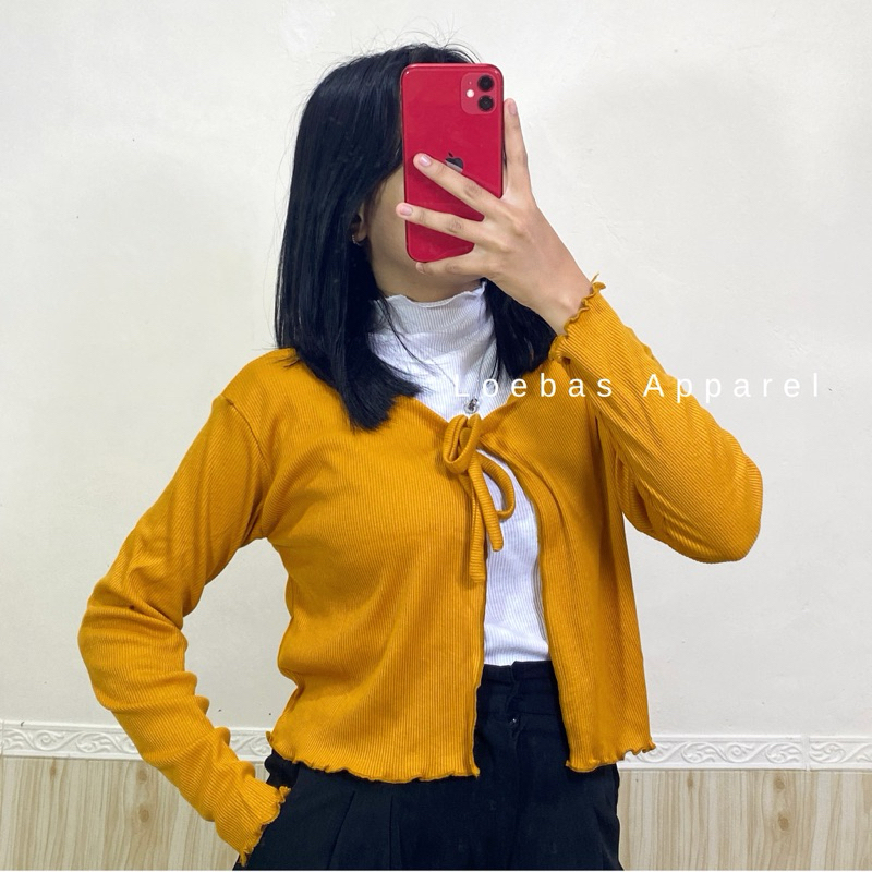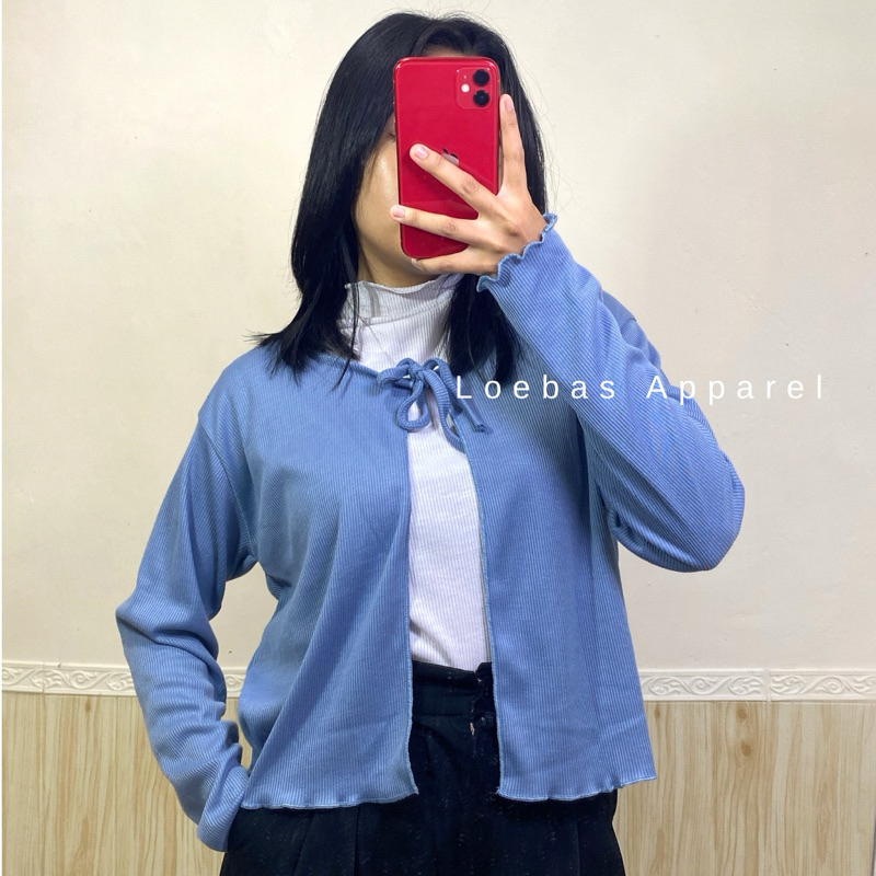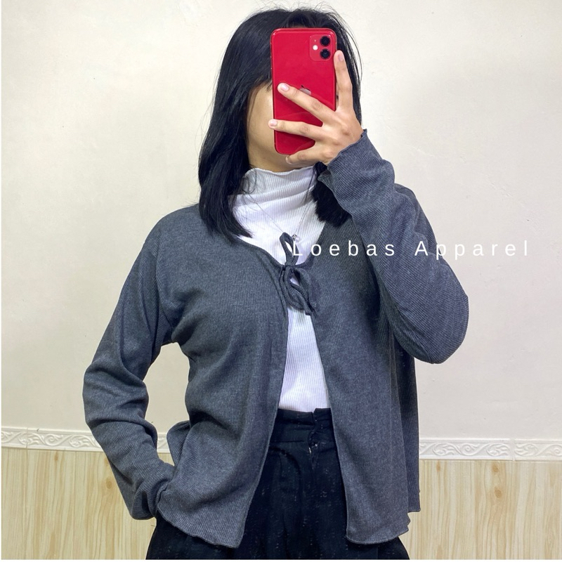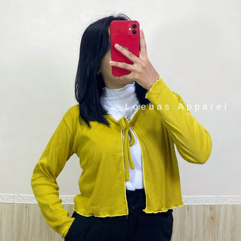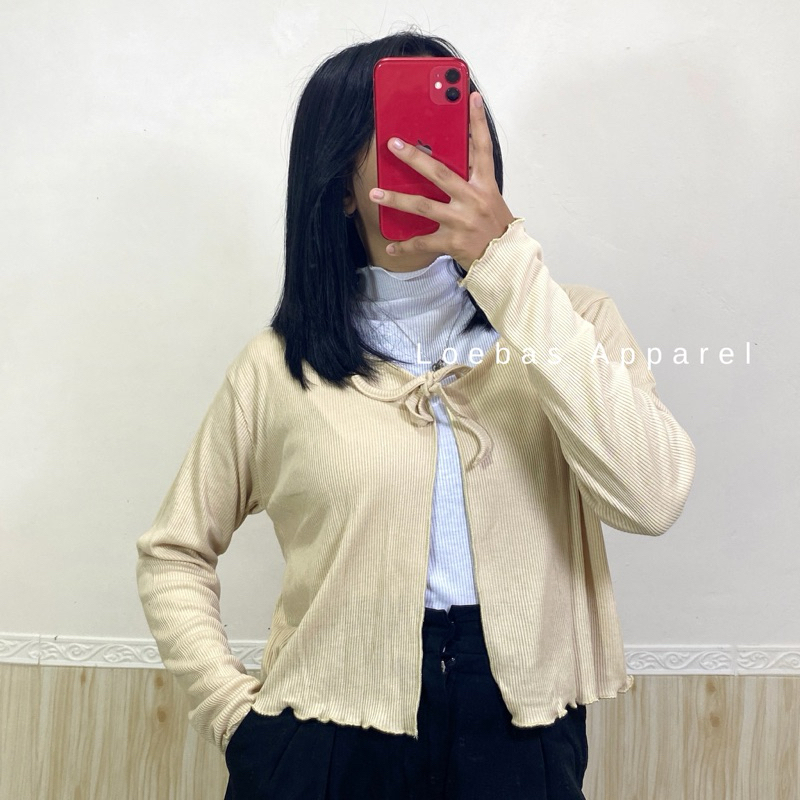 Cardigan Cewek Wanita Rib Rajut Crop Top Model Tali Depan Lengan Panjang Korean Style