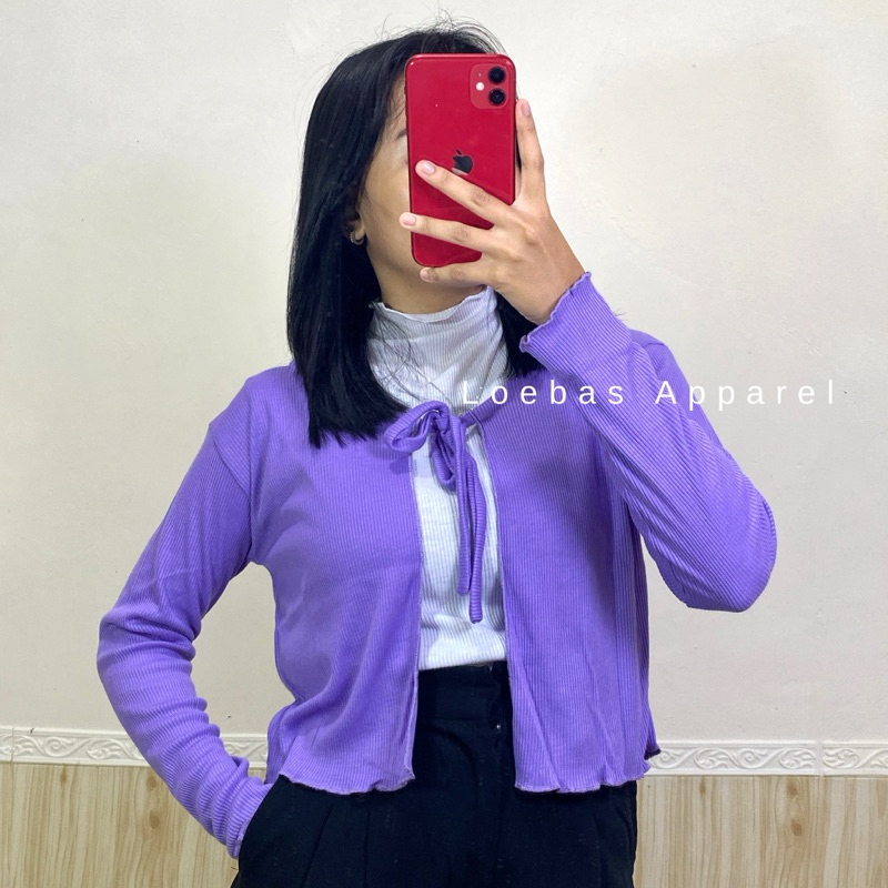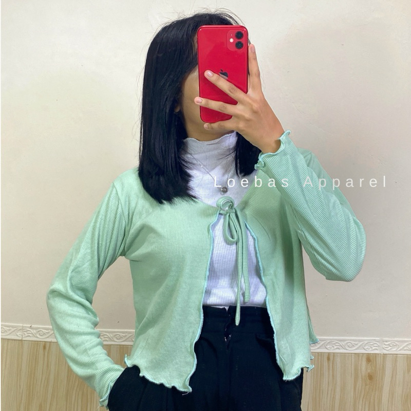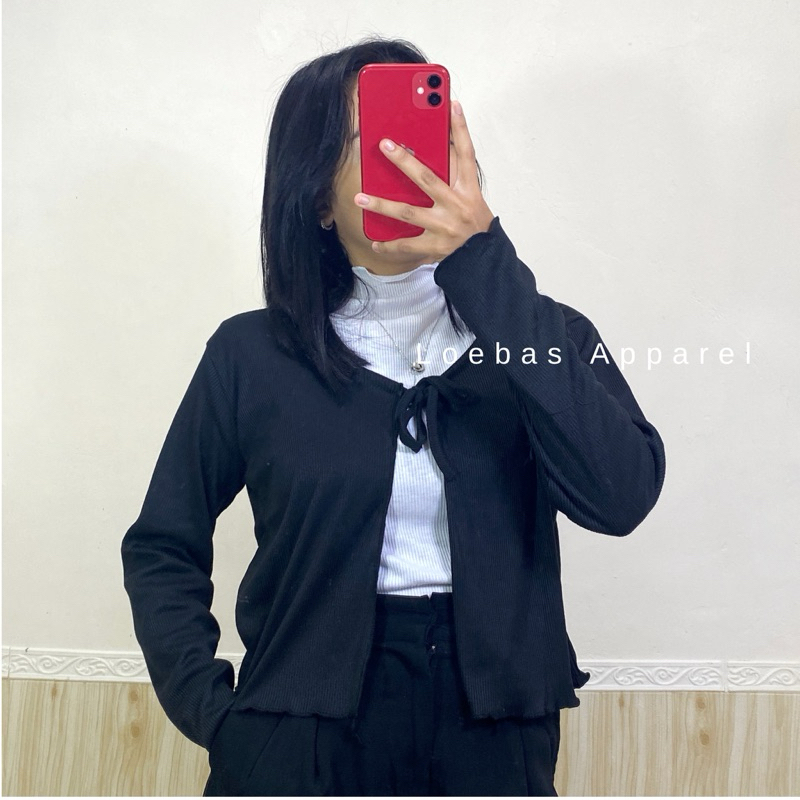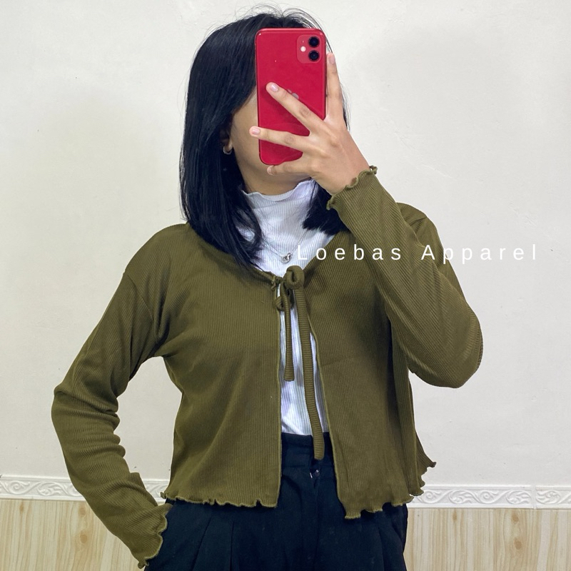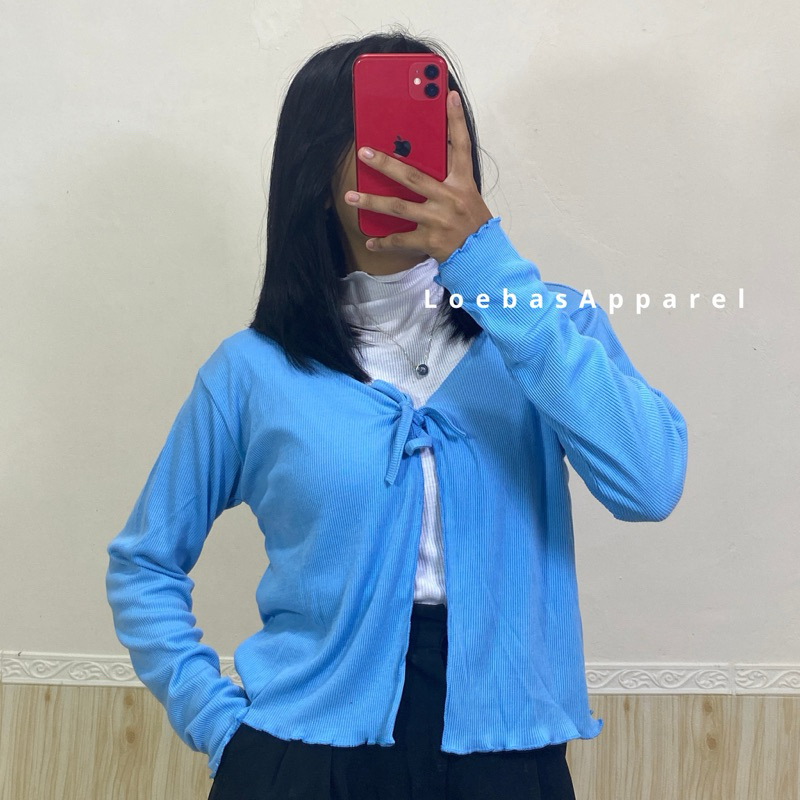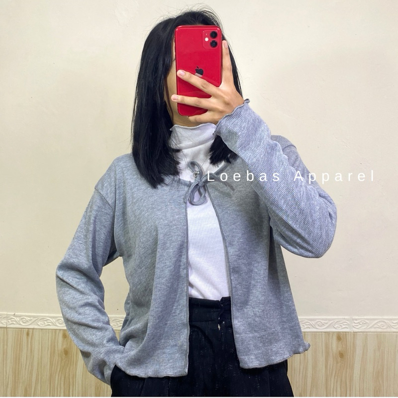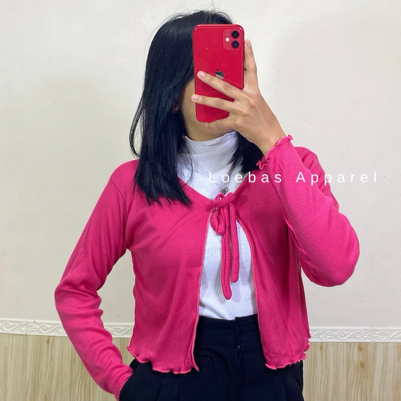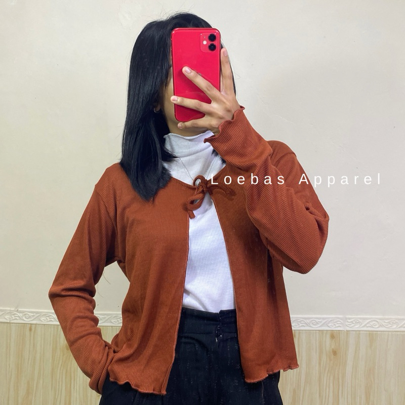 Cardigan Cewek Wanita Rib Rajut Crop Top Model Tali Depan Lengan Panjang Korean Style