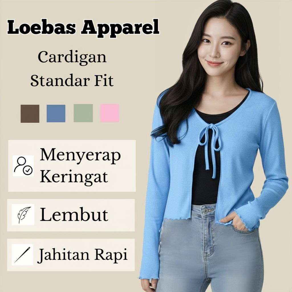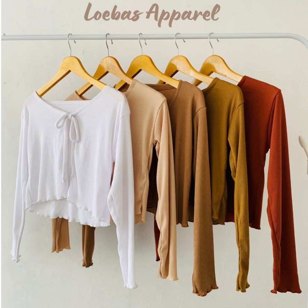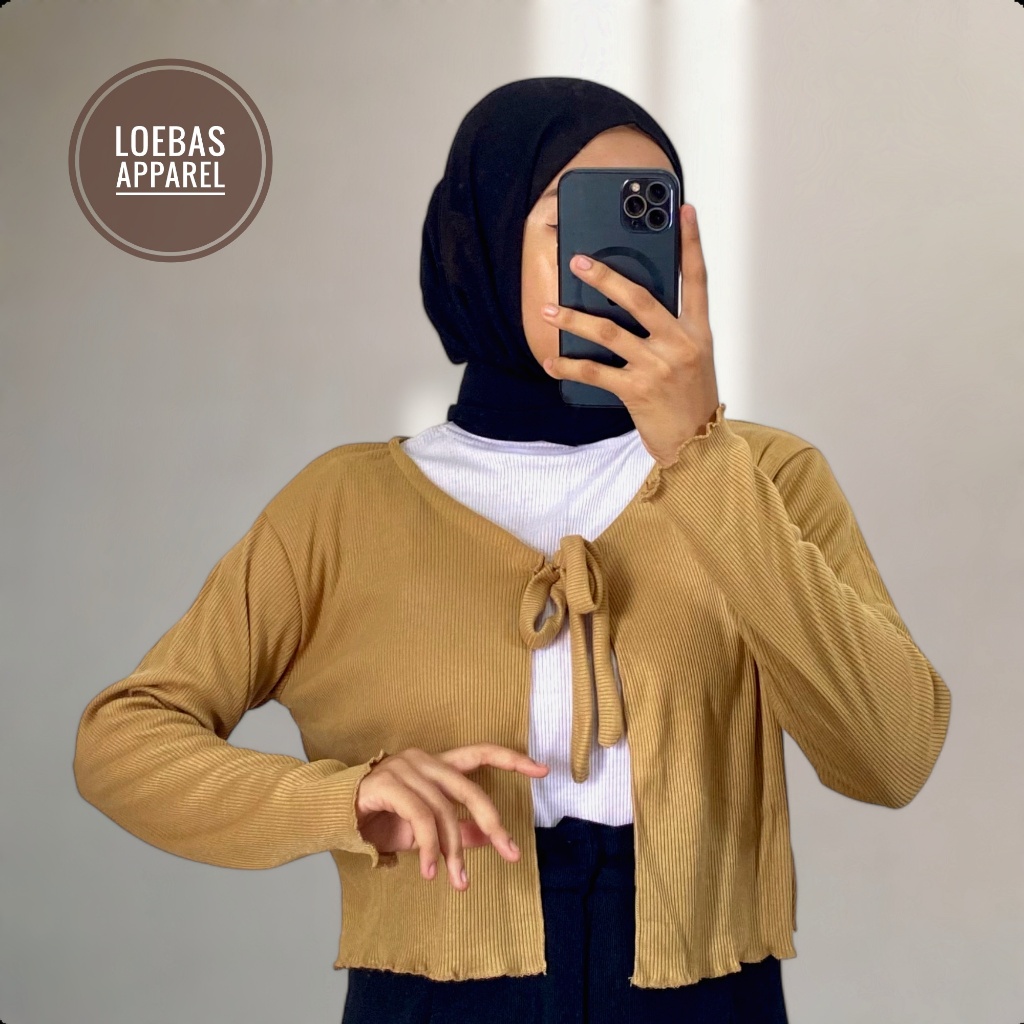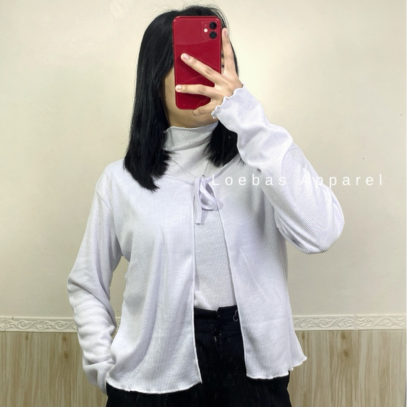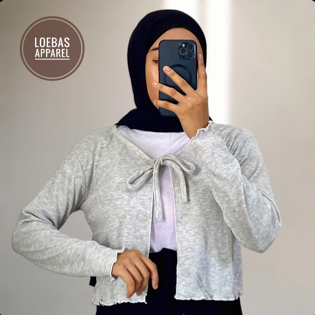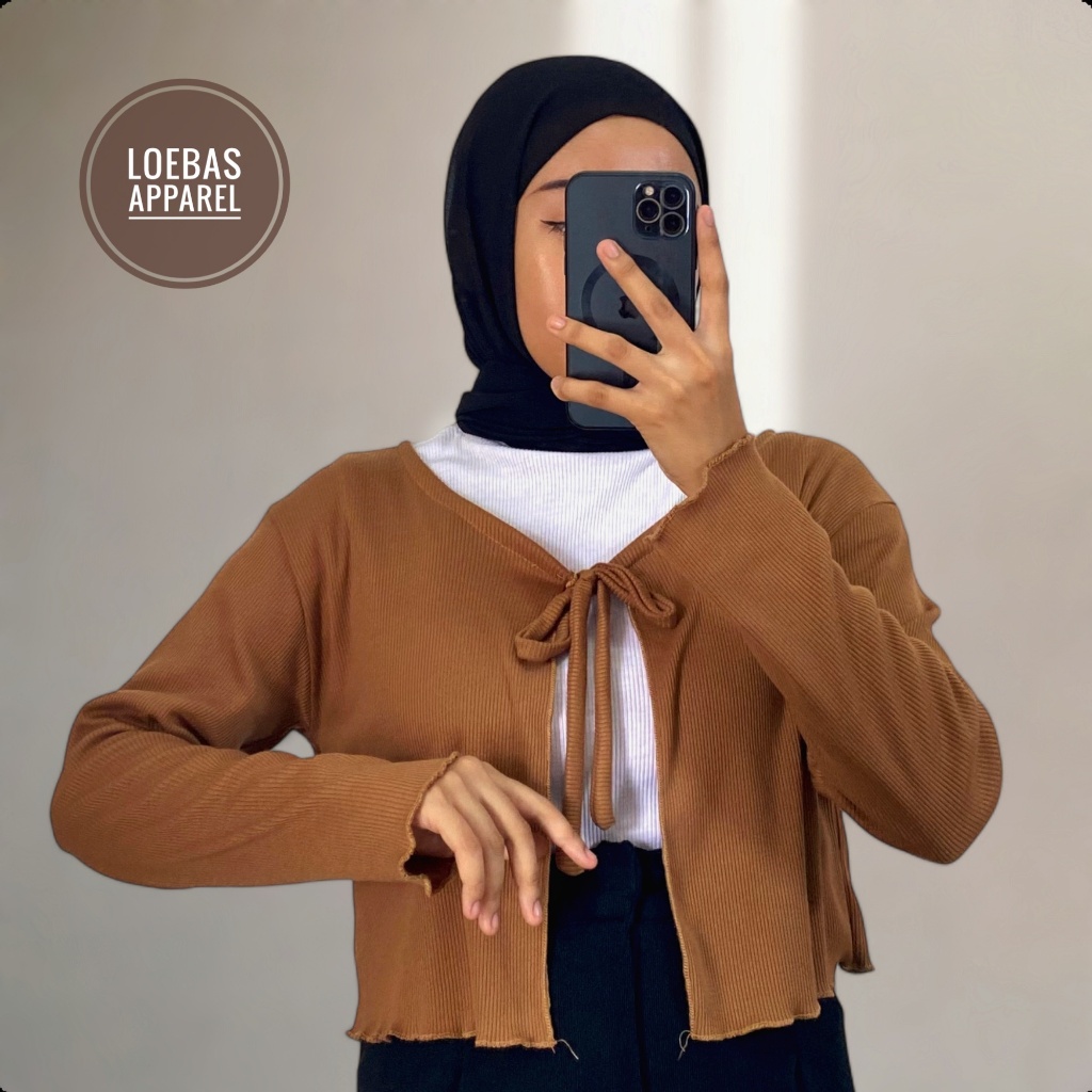 Cardigan Cewek Wanita Rib Rajut Crop Top Model Tali Depan Lengan Panjang Korean Style