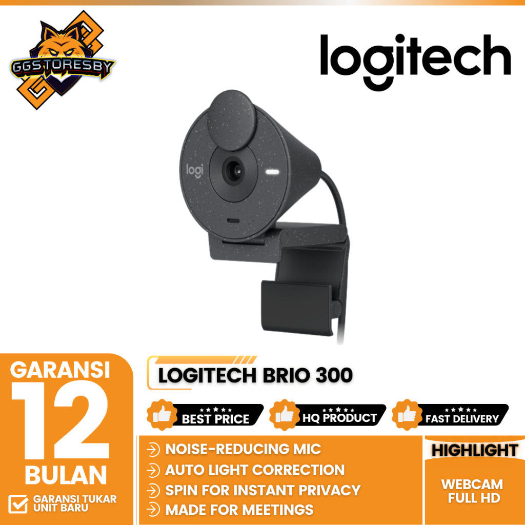 Logitech Brio 300 Webcam Full Hd Shutter Privasi & Noise-Reducing Mic