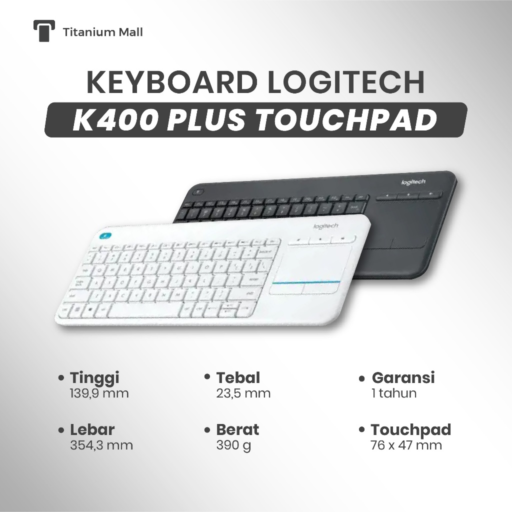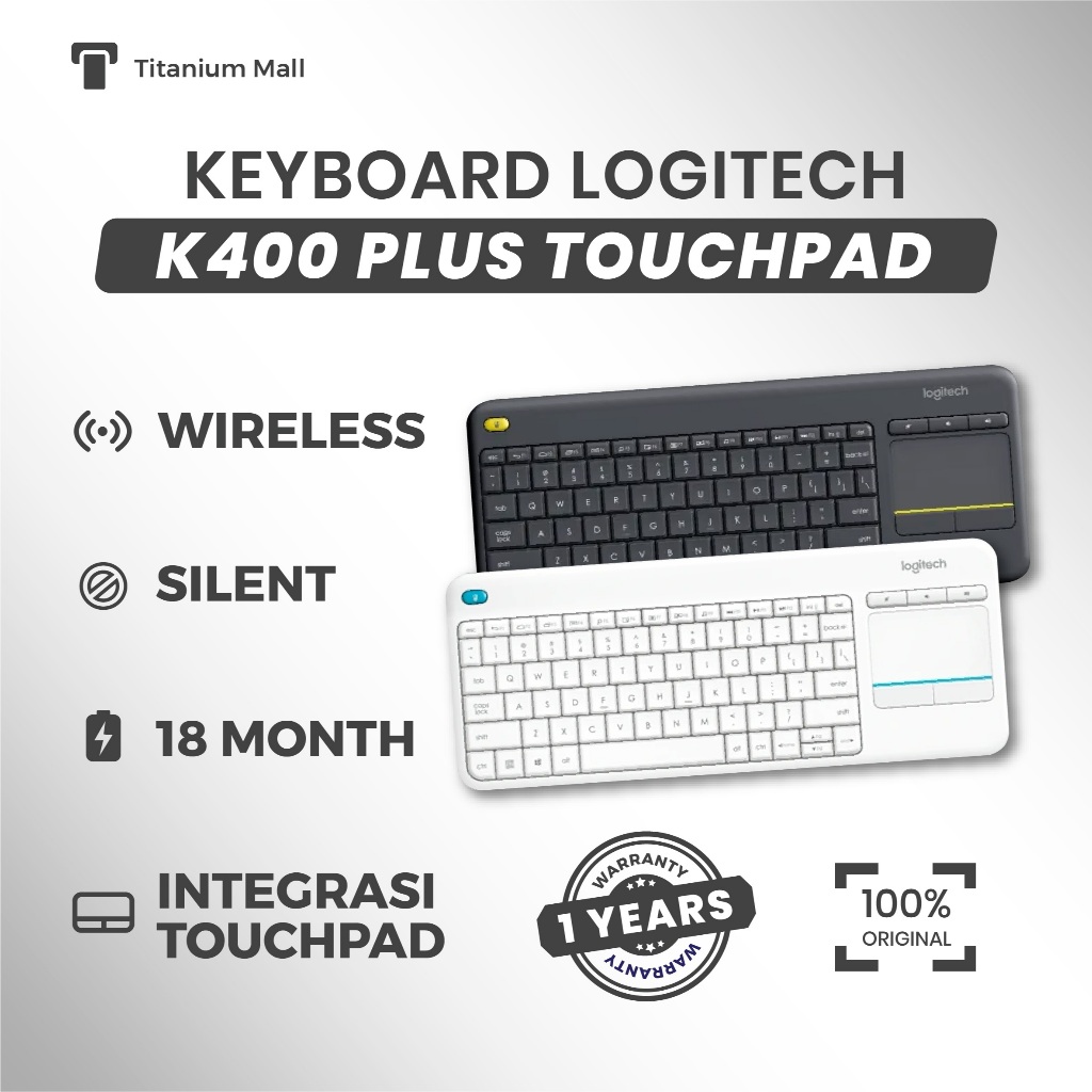 LOGITECH KEYBOARD K400 Plus Wireless Touch Protokol Logitech Unifying 2,4 GHz Maksimal 5jt keystroke