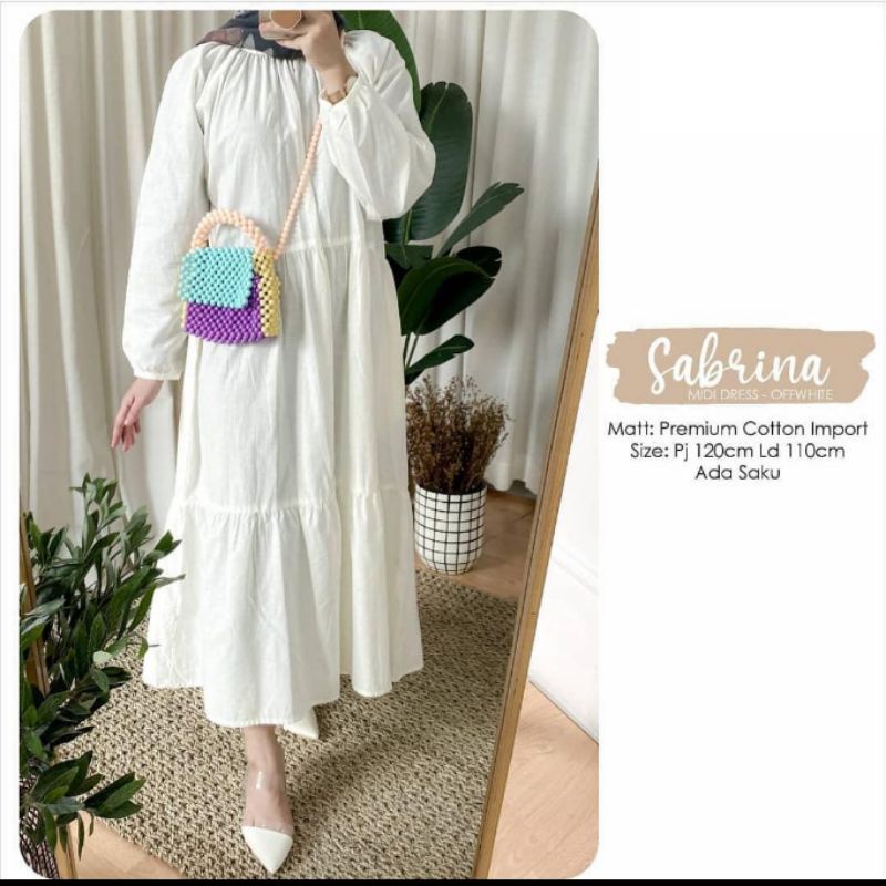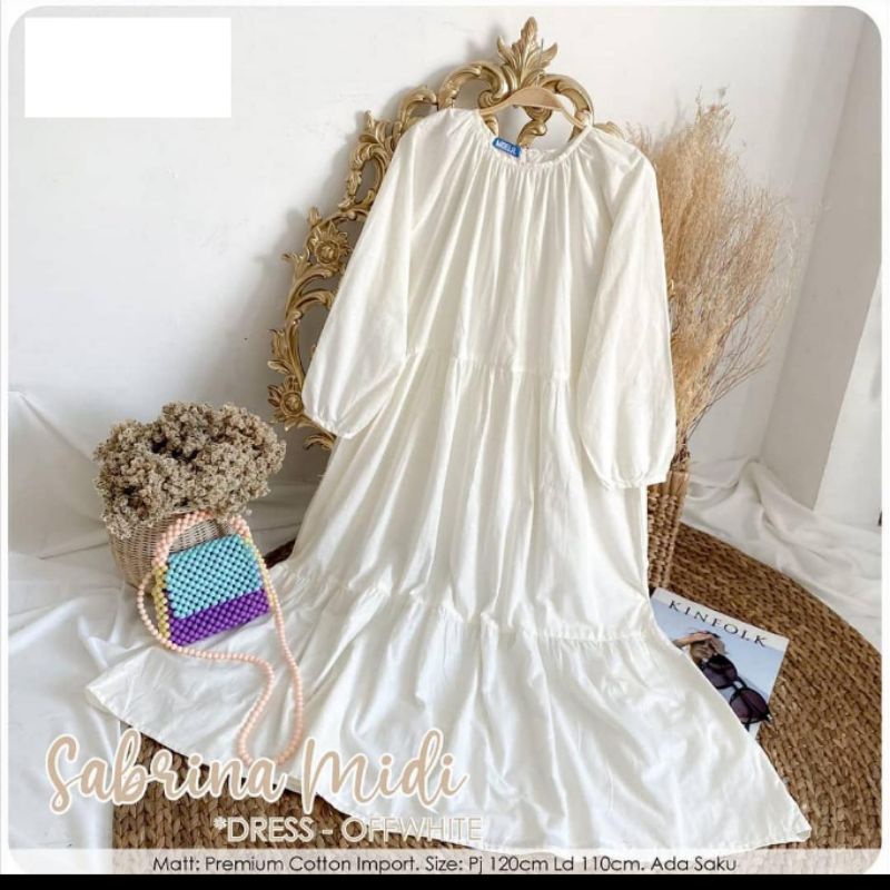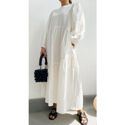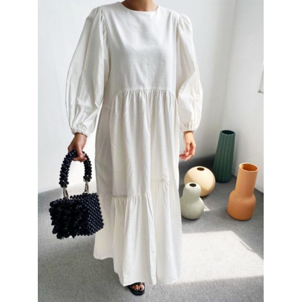 LONG DRESS PUTIH POLOS WHITE DRESS MIDI BASIC SIMPLE BOHO HV