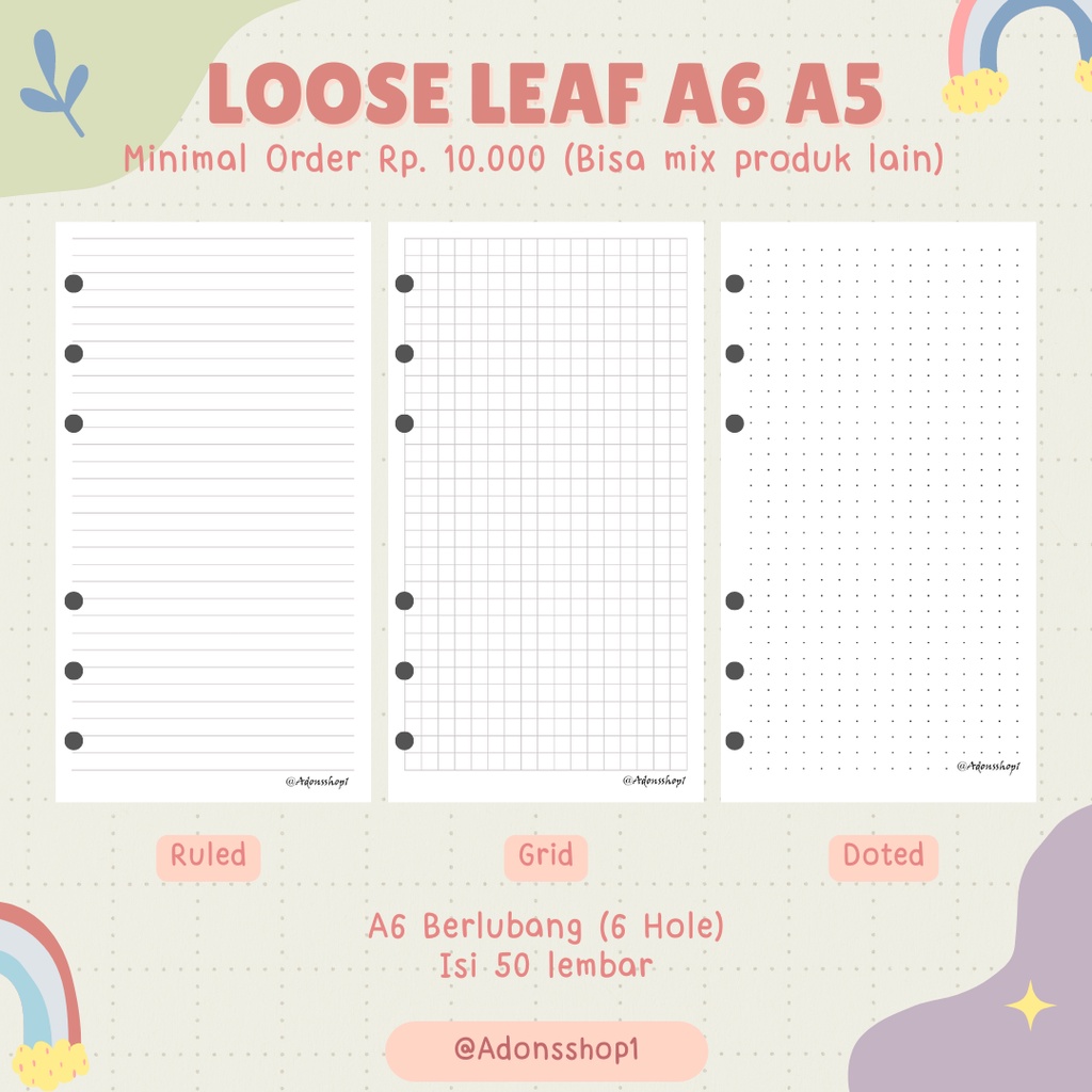 LOOSE LEAF A6 A5 ISI 45 LEMBAR [Refill Binder] (DOTED, LINE, BLANK, GRID, RULED) ISI BINDER