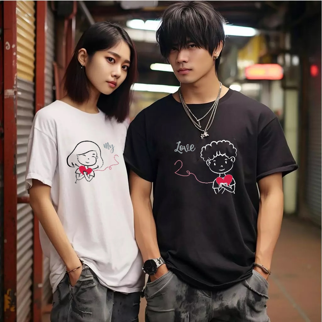 LOVE BOND baju cocok untuk kado anniv mensiv atau kaos kembar bareng teman sahabat keluarga saudara couple lucu gambar kartun awet tebal lembut