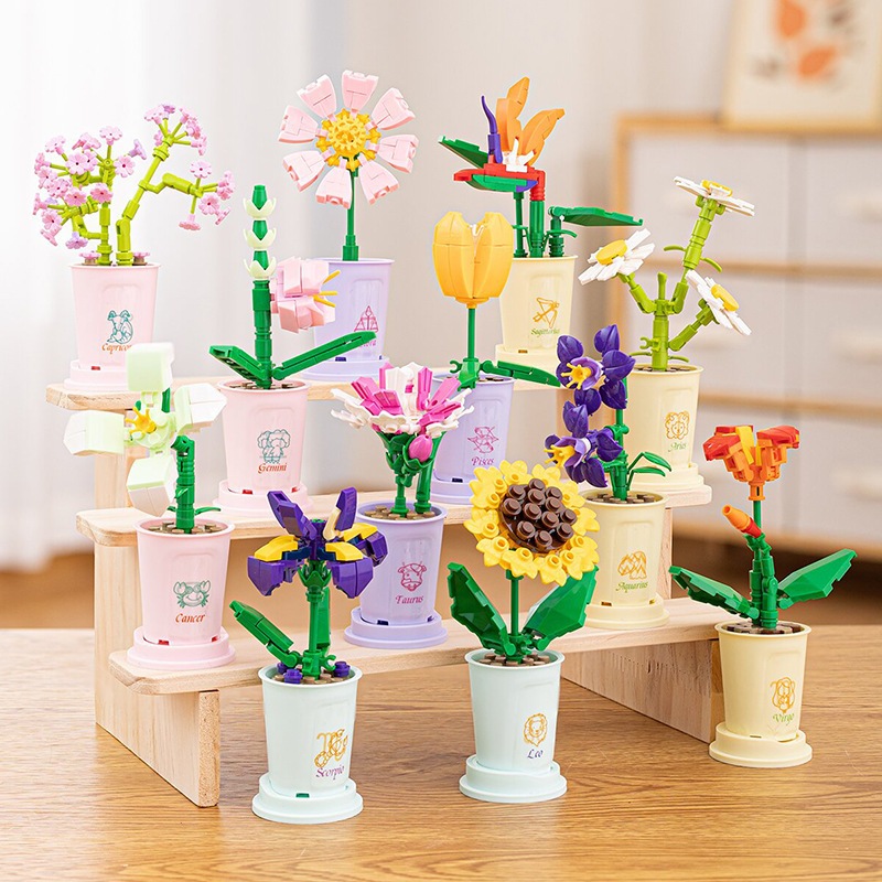 LOZTOYS DIY Flower Block Zodiak Cina Pot Tanaman Buket Blok Bangunan Mainan Block Bricks Mini Mainan Edukatif Balok