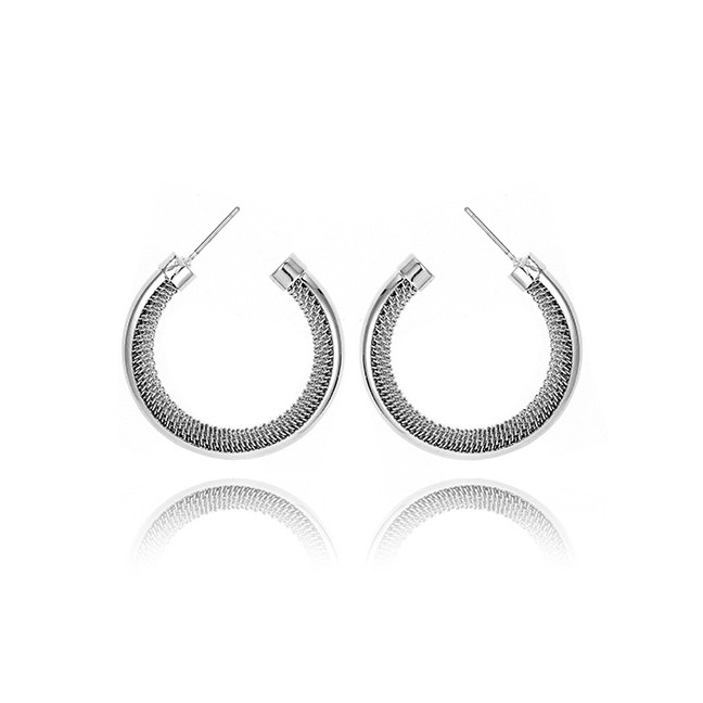 LRC Anting Hoops Fashion Silver Color Pure Color Design Round Shape E93730