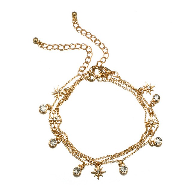 LRC Gelang Kaki Fashion Gold Color Star Shape Decorated Multi-layer Anklet