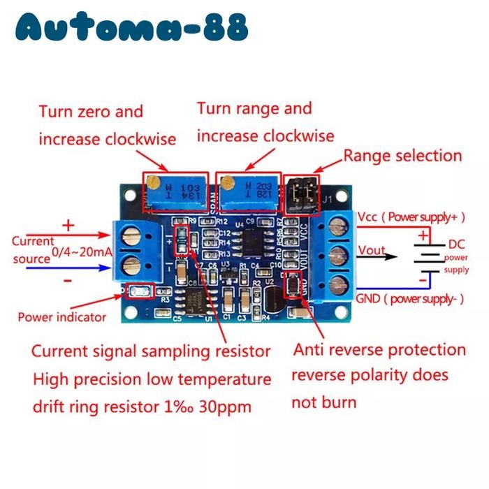 LT68 - Current To Voltage Module 0/4-20mA to 0-3.3V 5V 10V Converter Arduino