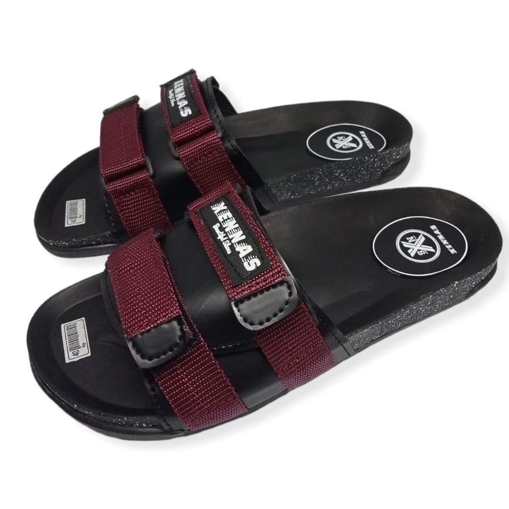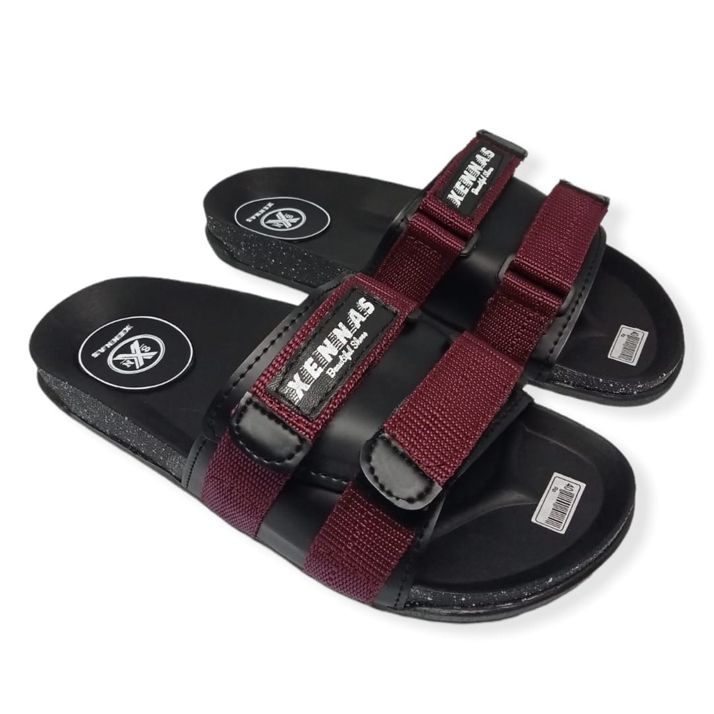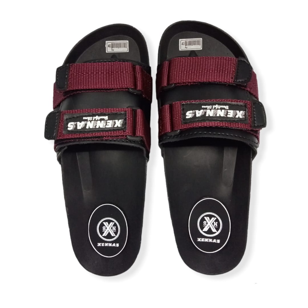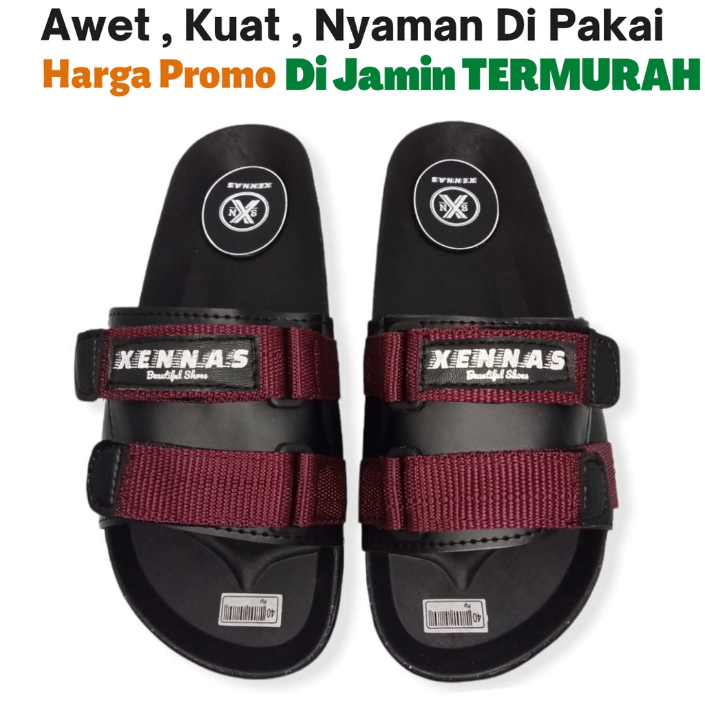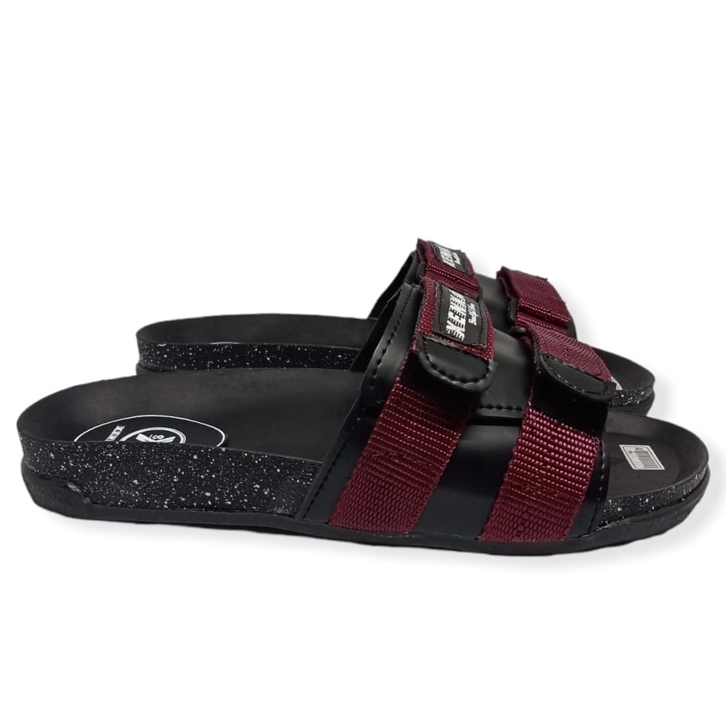 LUBRENE Sandal Slide Pria Terlaris Kekinian Sendal Slop Selop Slip On Flip Flop Cewek Cowok Trendy Keren Original Anti Slip Lentur Awet Nyaman Di Pakai List Red Merah Size Ukuran 39 40 41 42 43 Distro Terbaru