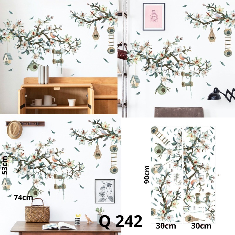 LUCKY CAT WALLSTICKER TWIGS RANTING POHON STIKER DINDING SUDUT SULUR DAUN BINGKAI RANTING