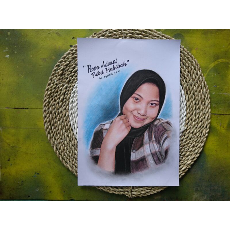 LUKIS WAJAH PENSIL MURAH UKURAN A4 WARNA/ JASA LUKIS WAJAH (HAND MADE)/ SEKETSA LUKISAN WAJAH/ HADIAH PACAR/ KADO UNIK/ HADIAH ISTIMEWA/ HADIAH PERNIKAHAN/ HADIAH ULANG TAHUN/ HADIAH UNIK MURAH +frame