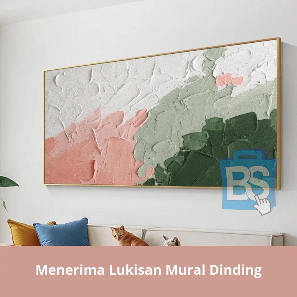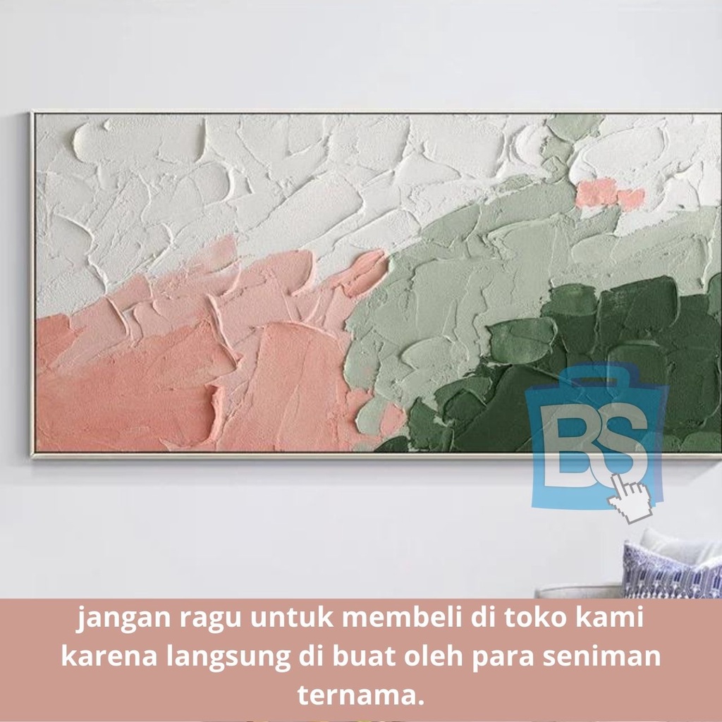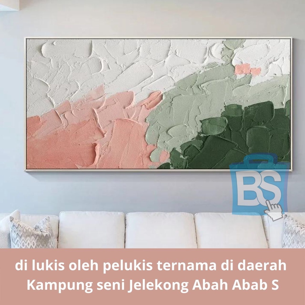 LUKISAN ABSTRAK HIJAU PUTIH DAN MERAH MUDA PALET BISA CUSTOM KAIN KANVAS TERBAIK MARSOTO CAT AKRILIK ORIGINAL ABSTRAK PALET