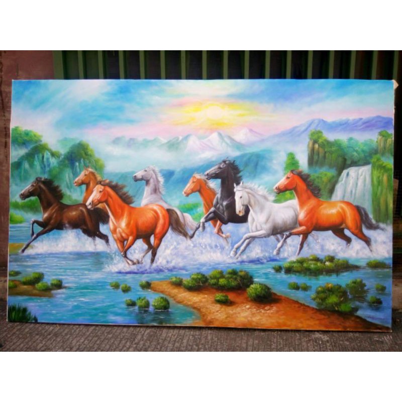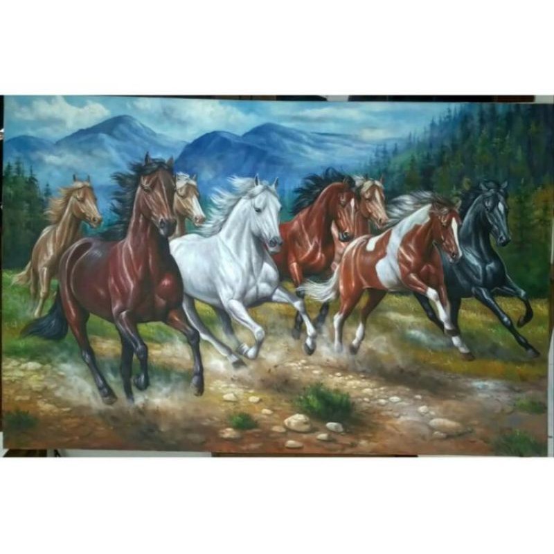 LUKISAN KUDA KEJAYAAN | LUKISAN SEGEROMBOLAN KUDA | LUKISAN KANTOR 3D
