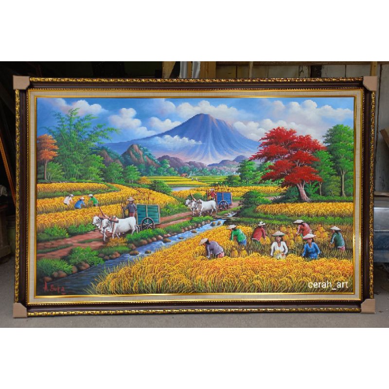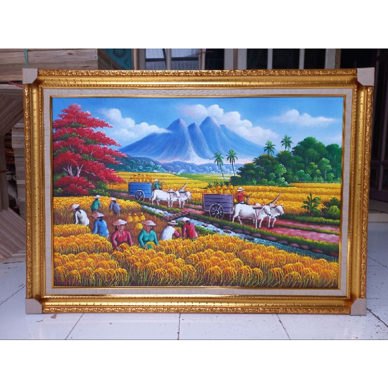 LUKISAN PANEN PADI KARYA TANGAN INCLUDE FRAME