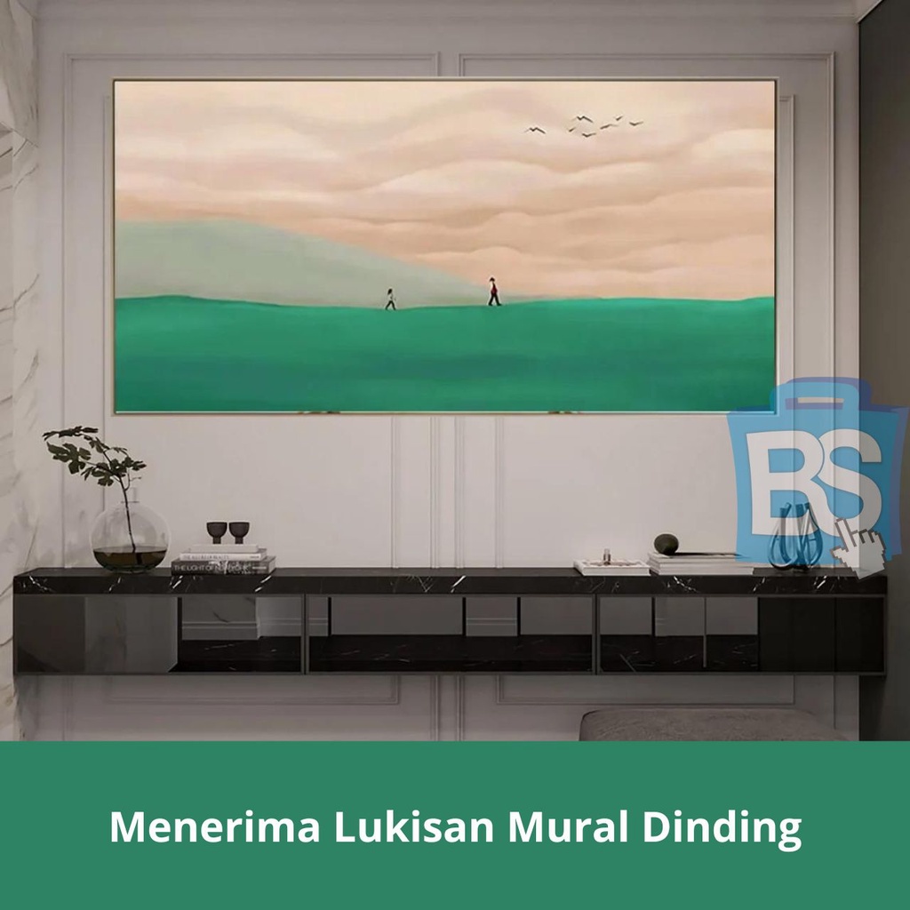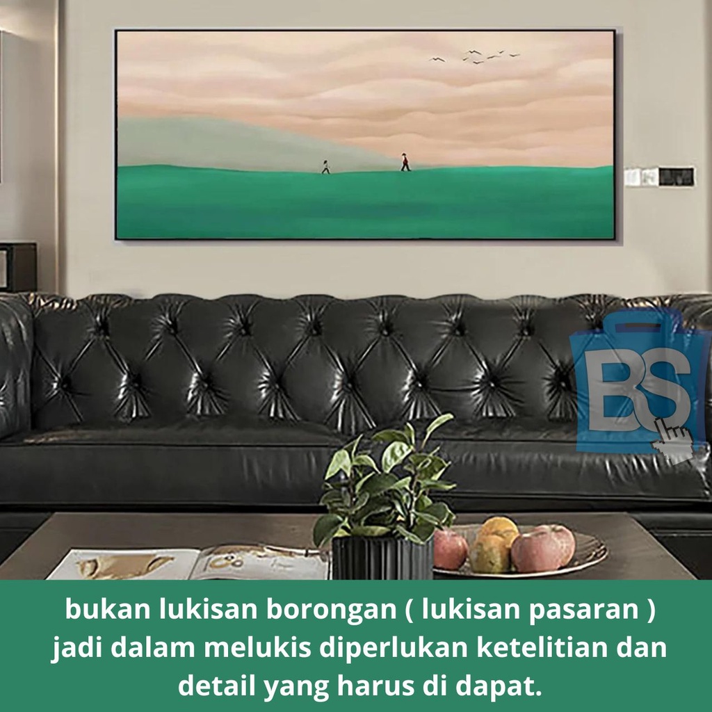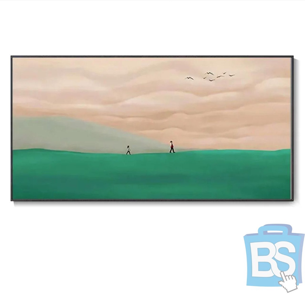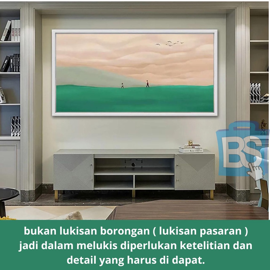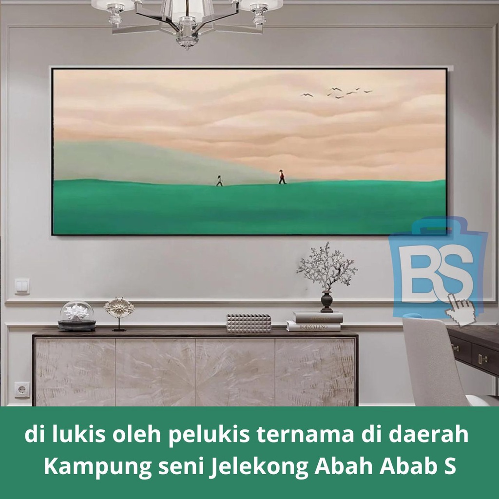 LUKISAN TANGAN 100% 2 ORANG BERJALAN DI ATAS BUKIT LANGIT BERAWAN PERLENGKAPAN RUMAH DEKORASI BINGKAI PHOTO & PAJANGAN BUKAN POSTER PRINTING WALLPAPER STICKER