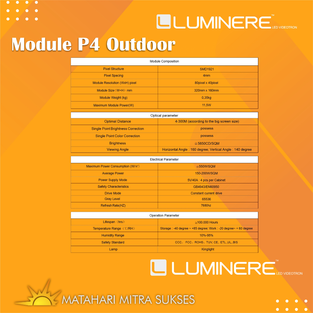 LUMINERE LED Videotron Modul P4 Outdoor 320x160 Refresh 7680Hz Lampu Kinglight