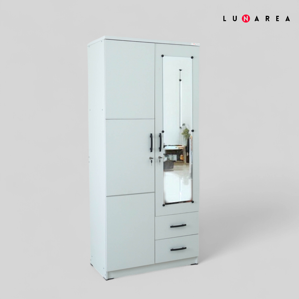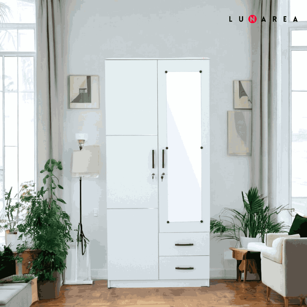 Lunarea Furniture - ALD 8112 L - Lemari Pakaian Dengan Laci Penyimpanan Cermin Panjang