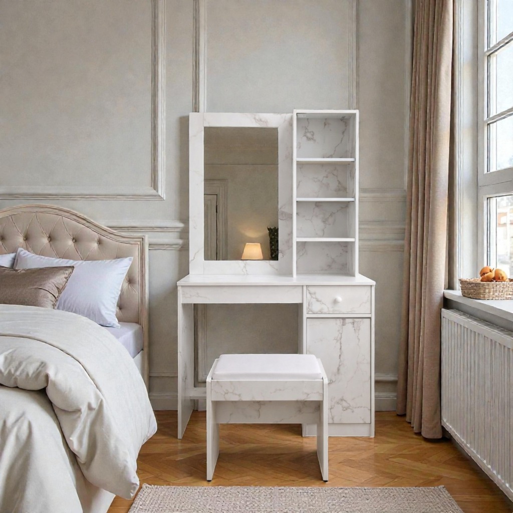Lunarea Furniture - MR 810 - Meja Rias Minimalis Aesthetic Modern - Meja Rias Free Kursi Empuk