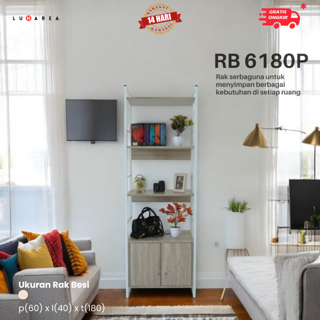 Lunarea Furniture - RB 6180P - Rak Besi Susun - Rak Susun Serbaguna - Rak Serbaguna Plus Kabinet