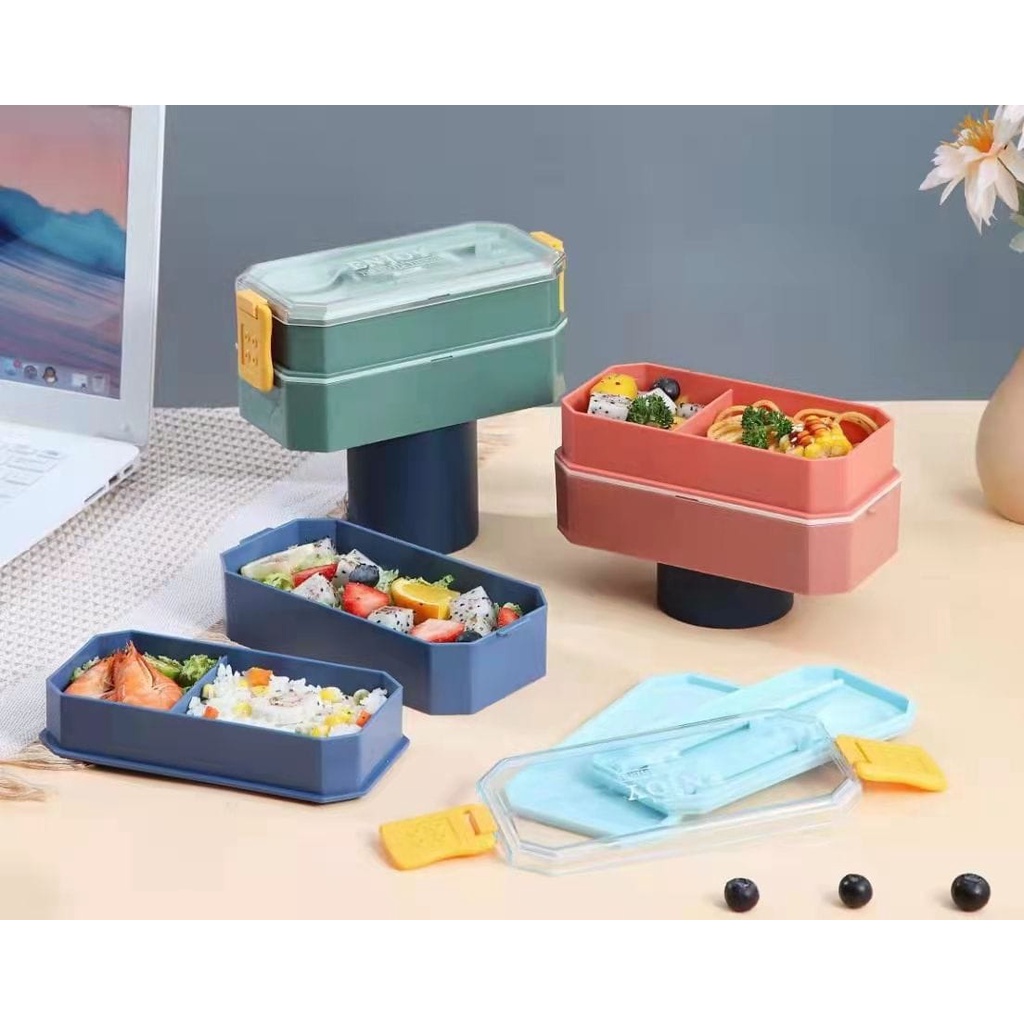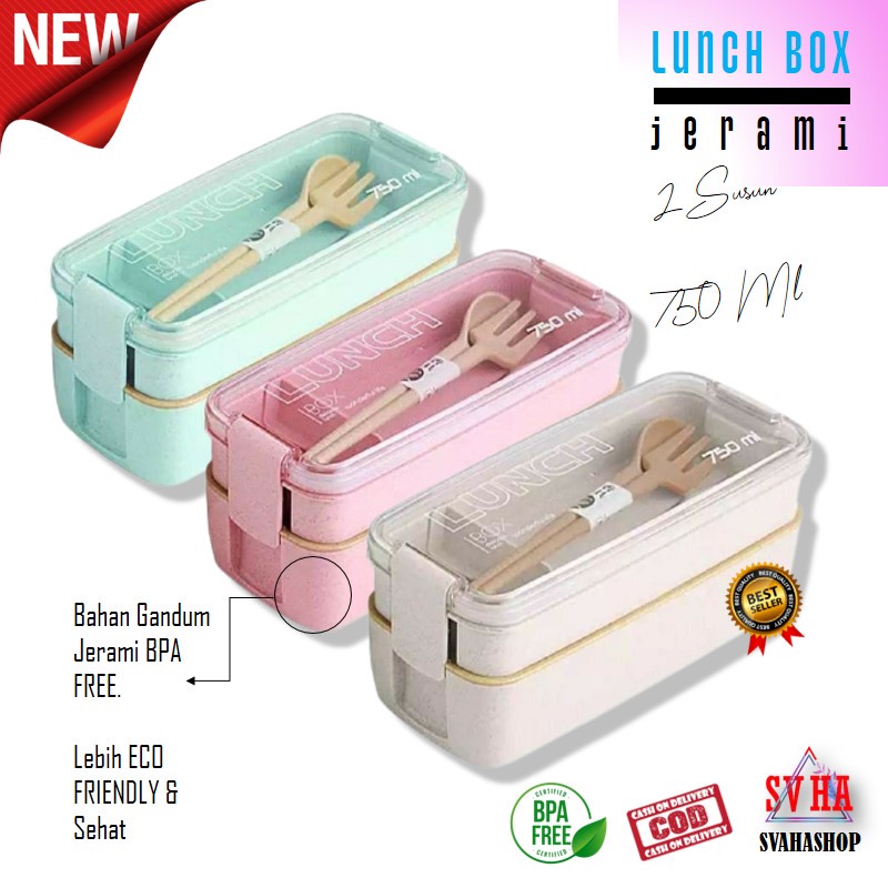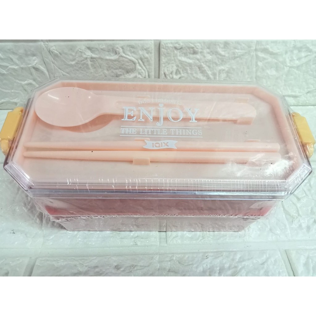 LUNCH BOX 2 SUSUN JERAMI 750 ML FREE SENDOK GARPU / LUNCH BOX ENJOY FREE SENDOK SUMPIT 2521A / LUNCH BOX 750 ML BENTO 2 SUSUN 348