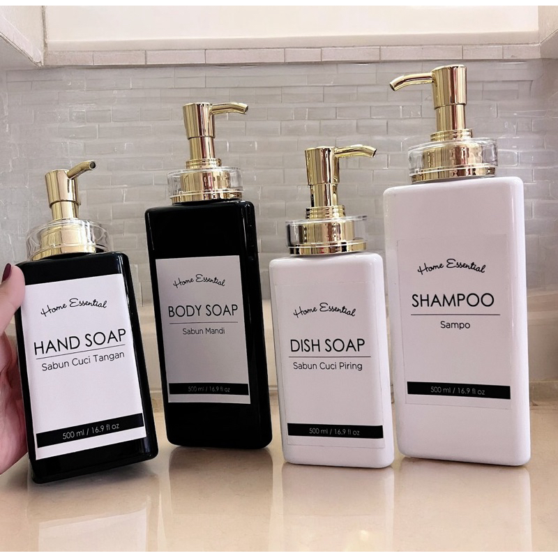 LUXURY BOTTLE REFILL TRIANGLE HITAM PUTIH 300ML 500ML LABEL TULISAN GAMBAR BOTOL SABUN aesthetic