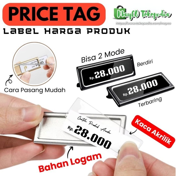 Label Harga Barang Price Tag Display Toko Minimarket Bahan Logam - GOLD