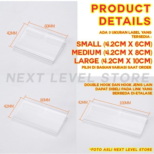 Label Harga Plastik Clear Putih PVC Price Tag Card Name Etalase Double Hook - ADA 3 SIZE - SMALL/MEDIUM/LARGE - 4.2cm x 6cm/8cm/10cm