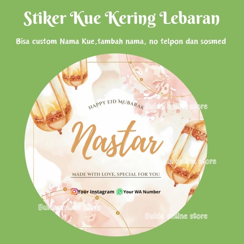 Label Sticker Stiker Kue Lebaran Nastar kuker kukis dekorasi segel kemasan toples mika cookies dus box kotak hampers parcel custom nama putri salju kastengel tambah sosmed telpon olshop Idul Fitri Eid Mubarak cake baking pastry hiasan Ramadhan homemade
