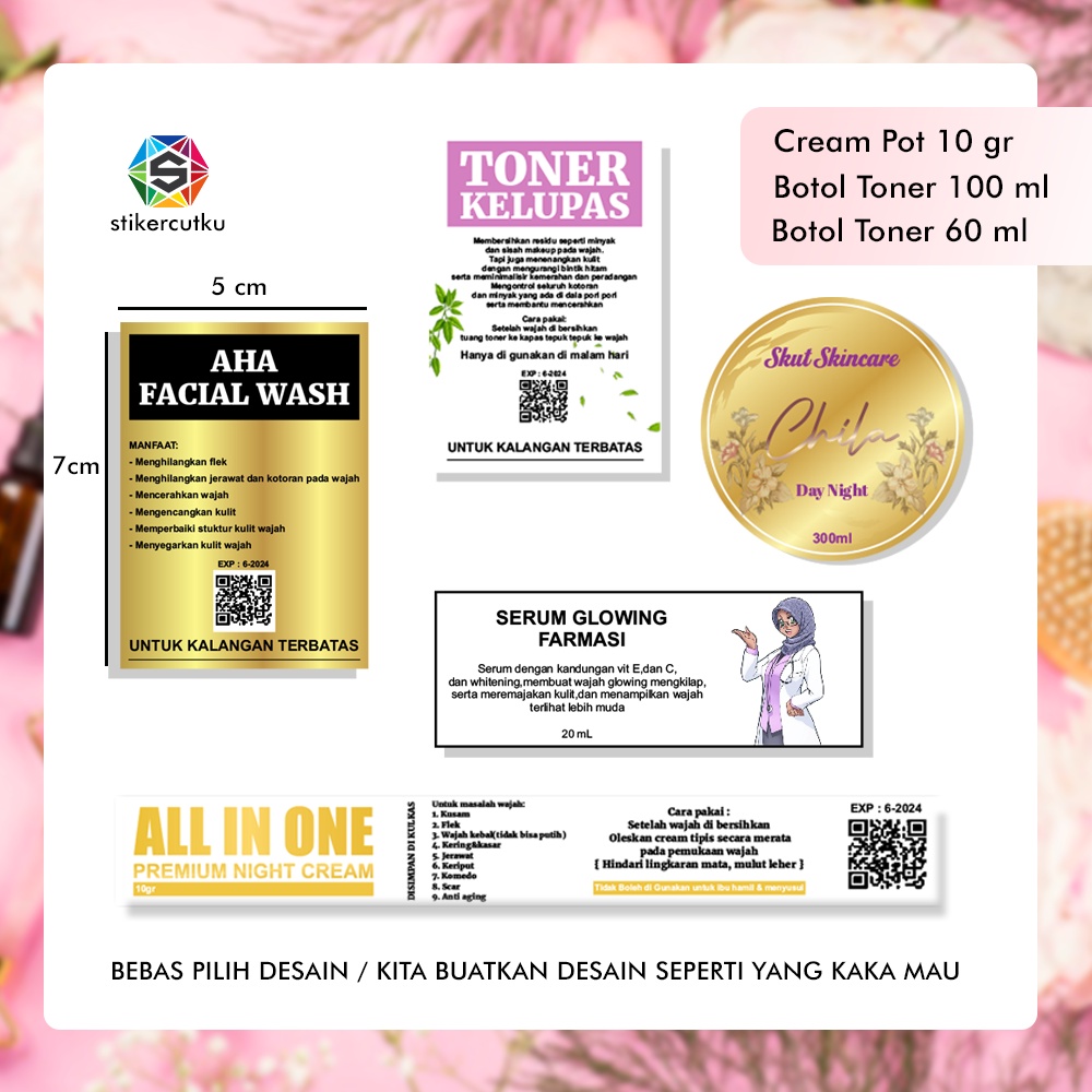 Label Stiker Logo Makanan Stiker Skincare Custom Vinyl A3 Produk Makanan Minuman Botol Toner Wajah Serum Free Desain Cutting Bekasi Jawa Barat Tanggerang Bogor