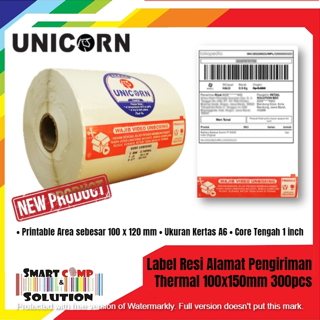 Label Thermal Resi Alamat AWB A6 100x150 / 100x150MM / 10x15 CM Stiker Fragile Unboxing Isi 300pcs