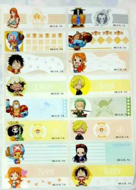 Label nama anti air sticker waterproof Premium One Piece Ori