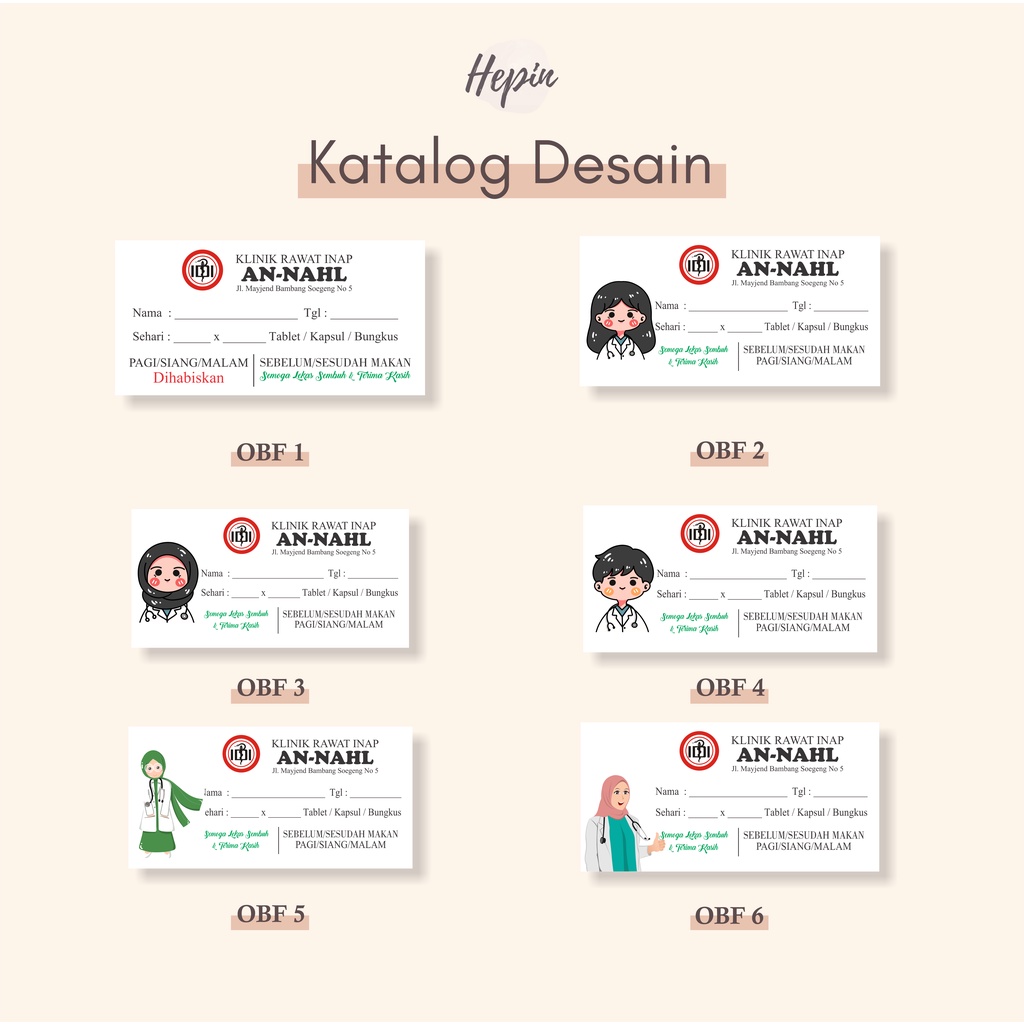 Label obat Tema FORMAL PUTIH & KARAKTER/ Etiket obat syrup / Stiker label obat / Stiker label obat sirup/stiker obat