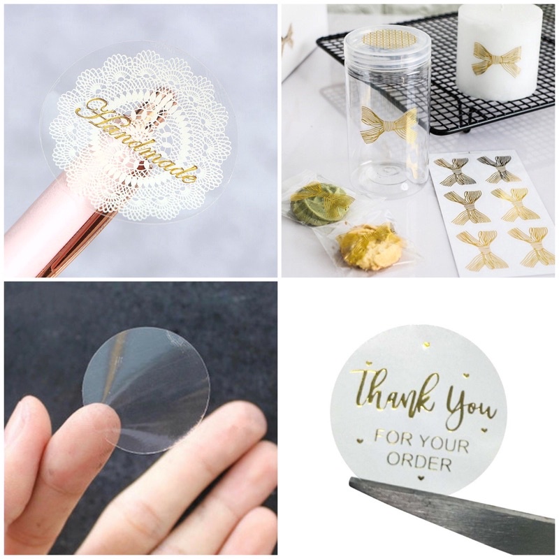 Label stiker Transparan Polos/Segel Box Kemasan Transparant/ Sticker kosong Motif Transparan Label Handmade Thank you