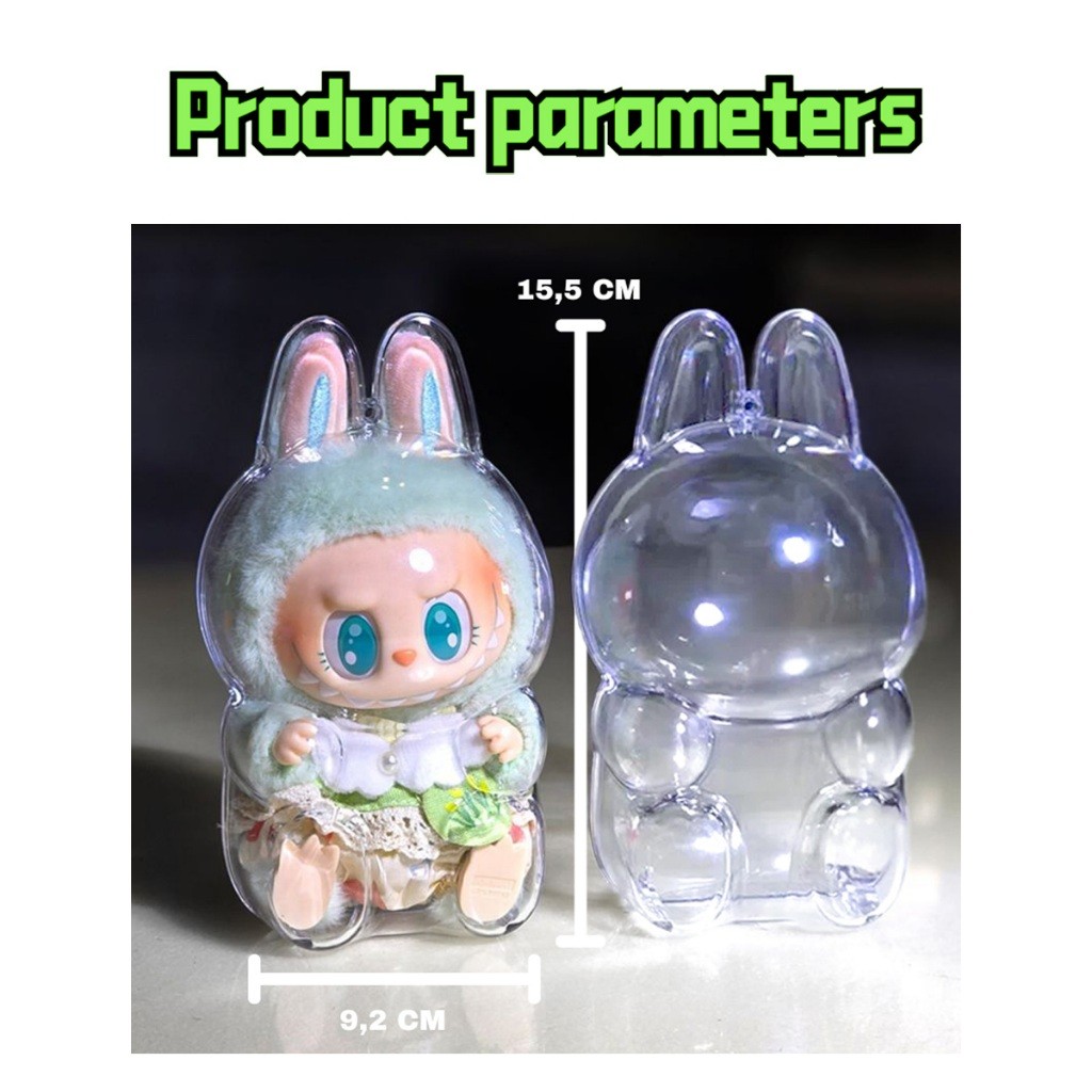 Labubu case acrylic casing labubu V1 & V2 protector labubu Casing pelindung yang menebal Transparent Storage Display Box